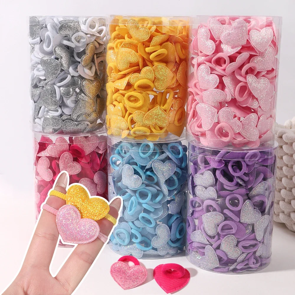 Color: DARK GRAY - 10pcs Love Star Kids Hair Loop No Harm Hair Towel Loop Head Rope Cartoon Ponytail Holder Rubber Band Girls Hair Accessories