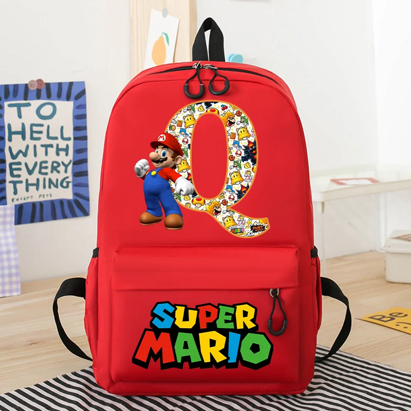 Color: DARK GRAY, Size: 12cm - New Super Mario Bro School Bag Cartoon Letter Printed Children Backpack Boys Girls School Backpacks Children's Birthday Gifts