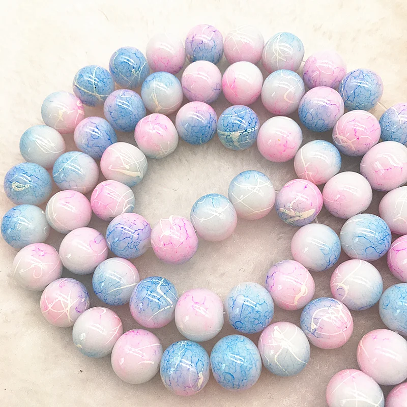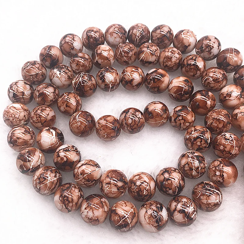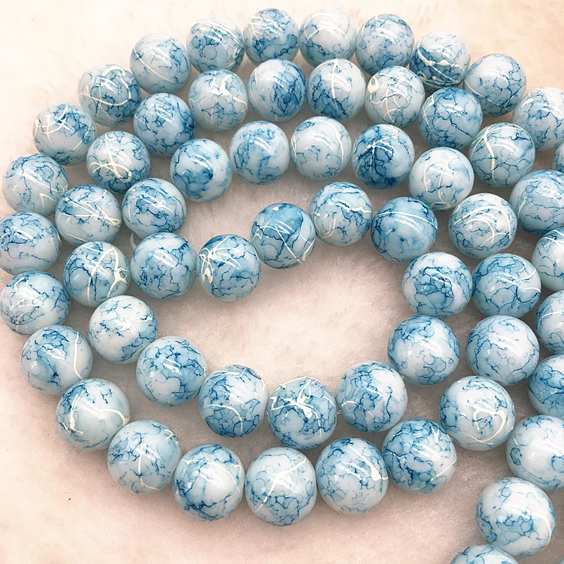 Color: Dark green, Item Diameter: 4mm - Wholesale 4/6/8/10mm Glass Beads Round Loose Spacer Beads Pattern For Jewelry Making DIY Bracelet Necklace