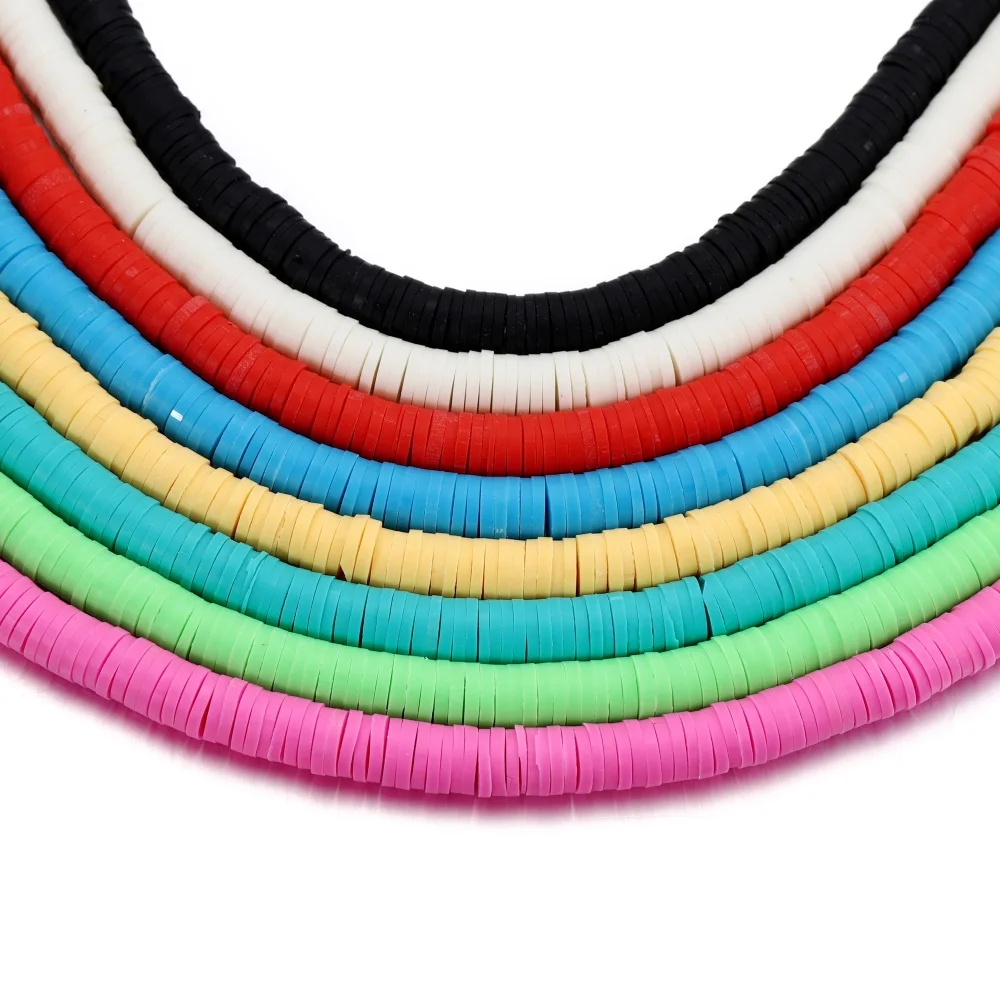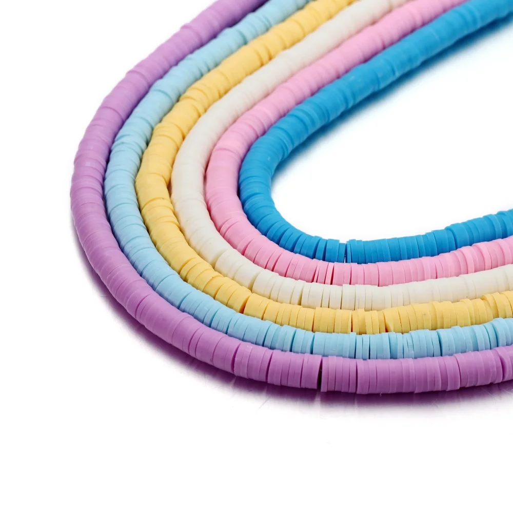 16Inch/Line 6mm Colorful Flat Round Polymer Clay Beads Loose Spacer Beads for DIY Jewelry Making Bracelet Necklace Accessories