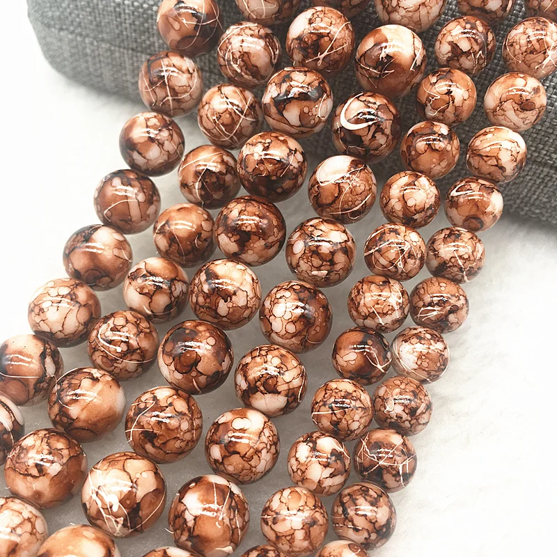 Color: Dark green, Item Diameter: 6mm - Wholesale 4/6/8/10mm Glass Beads Round Loose Spacer Beads Pattern For Jewelry Making DIY Bracelet Necklace