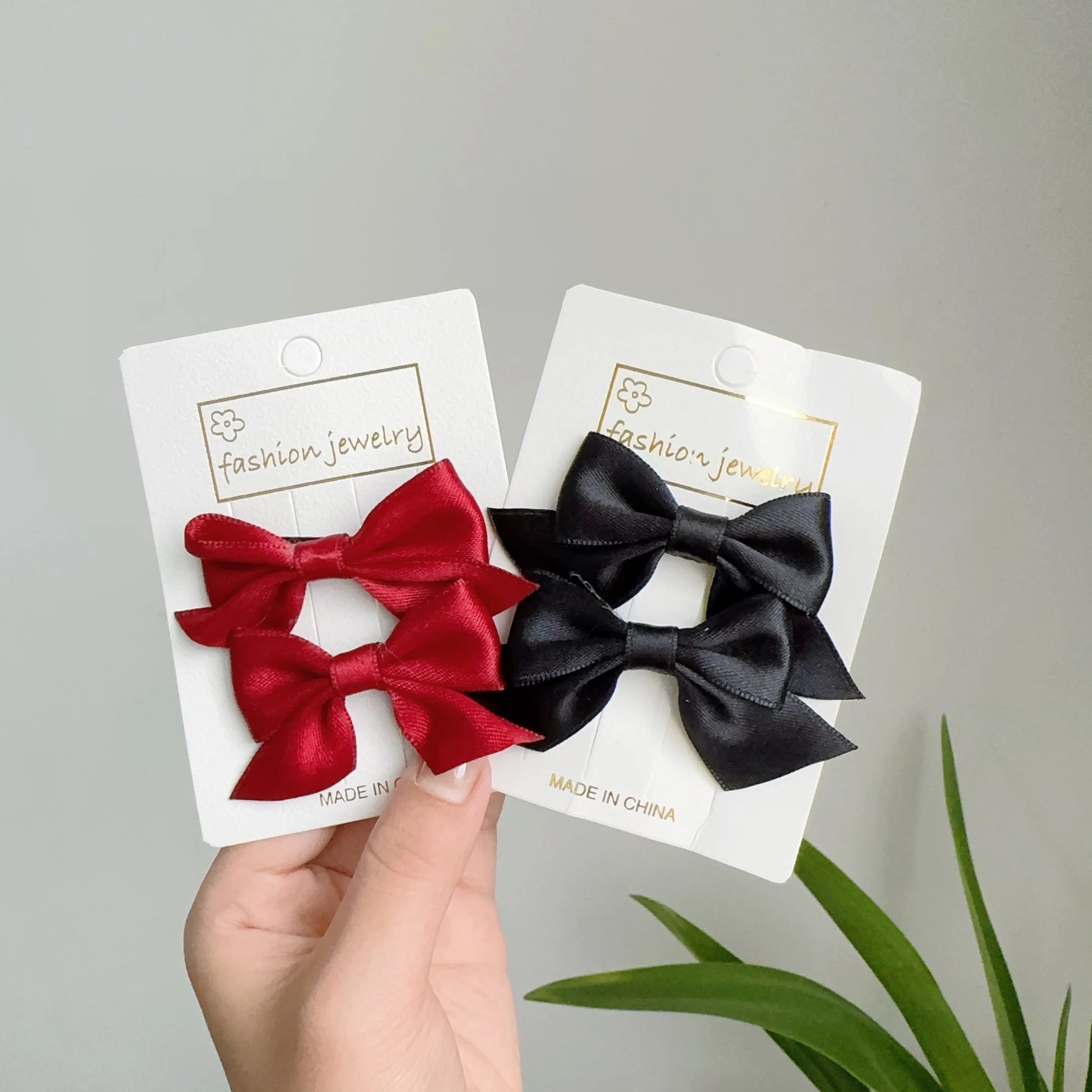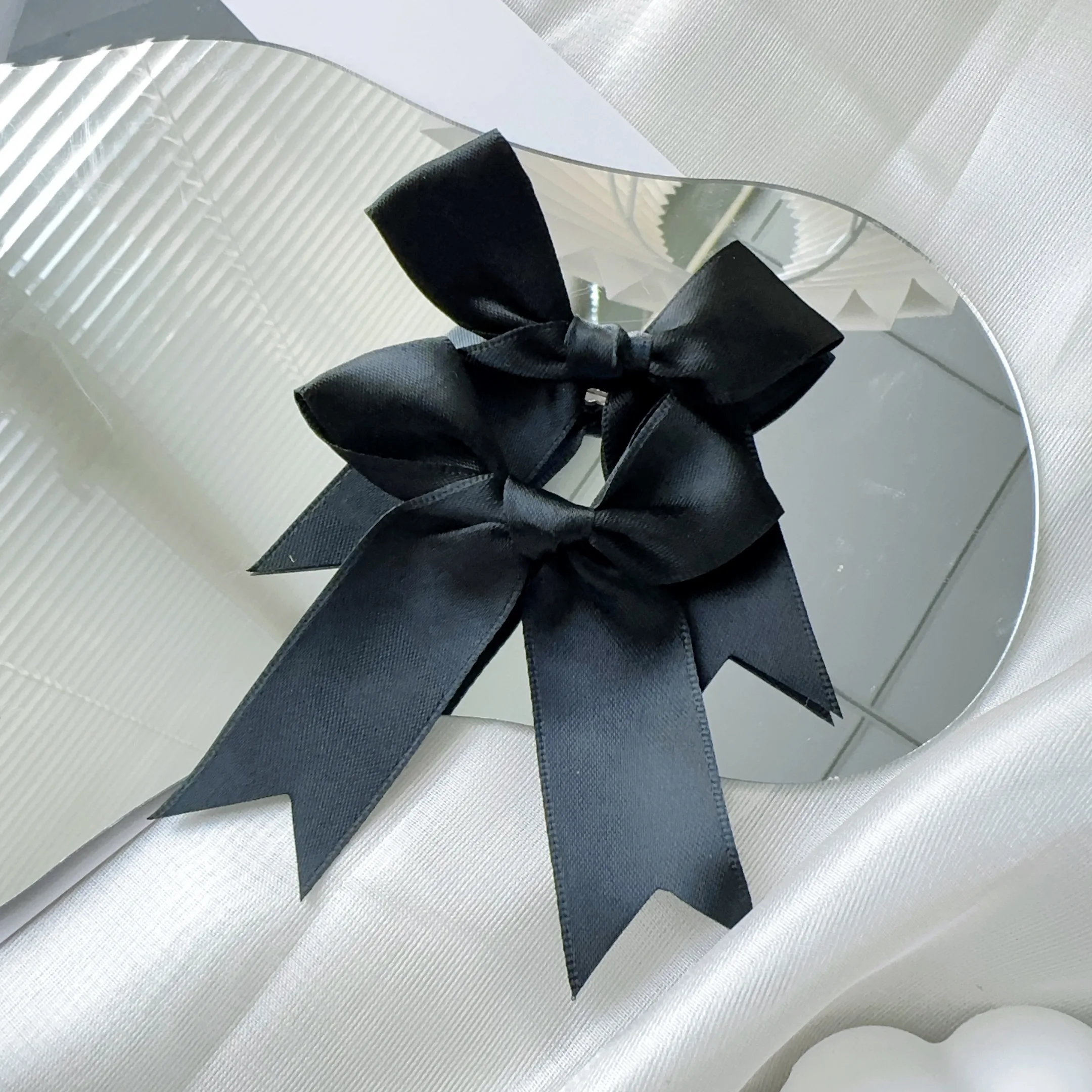 Color: Dark Grey - 2Pcs Starry Dots Red Velvet Bow Hair Pins Hair Clips Kids Girls Fashion Christmas Barrettes Ponytail Holder Headwear Accessories