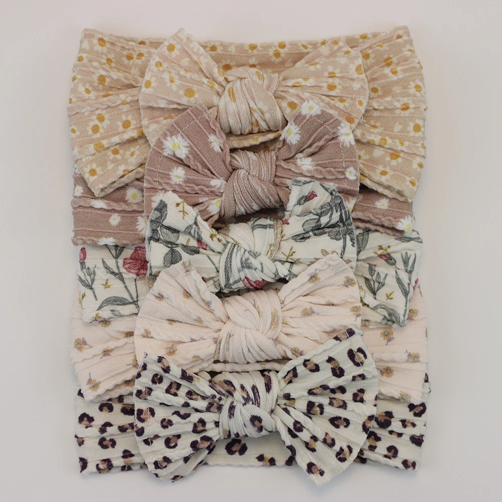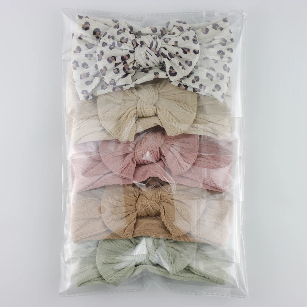 Color: Dark Grey - 5pcs/Lot Cable Knit Bow Baby Headbands Elastic Nylon Baby Girl Headband For Children Turban Newborn Infant Kids Hair Accessories
