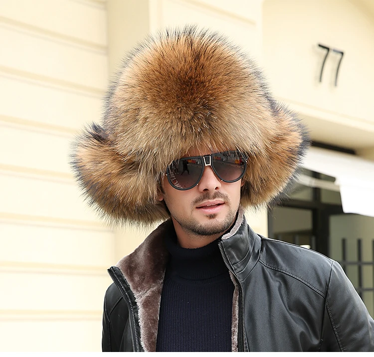 Color: Dark Grey, Hat Size: 56 - 2025 Winter 100% Real Silver Fox Fur Bomber Hat Raccoon Fur Ushanka Cap Trapper Russian Men's Ski Hats Caps