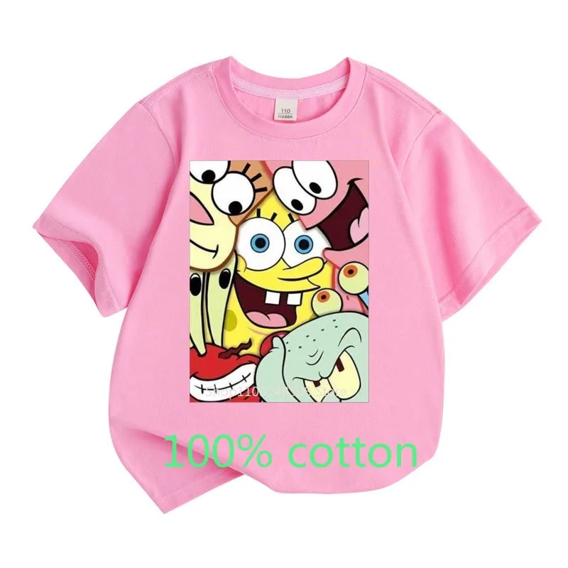 Color: Dark Grey, Kid Size: 13T - Mr. Krabs Squidward Sandy Spongebob T-shirt 100%Cotton Children Round Neck Short-sleeved Boys Girls Fashion Kids Clothes