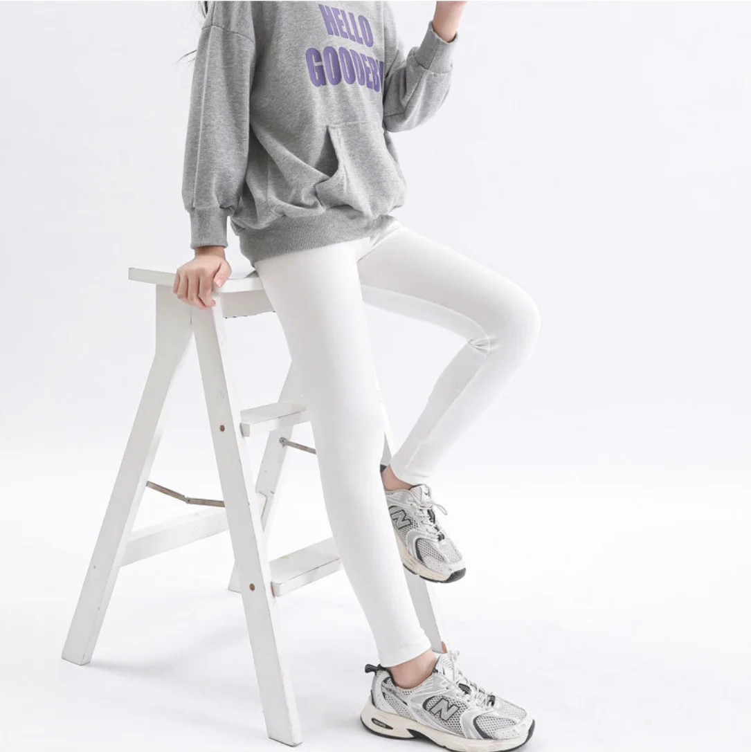 Color: Dark Grey, Kid Size: 7 - Girls' Leggings Spring And Autumn Style 95 Cotton Female Baby Elastic Pants Children's Slim outer Wear Pants