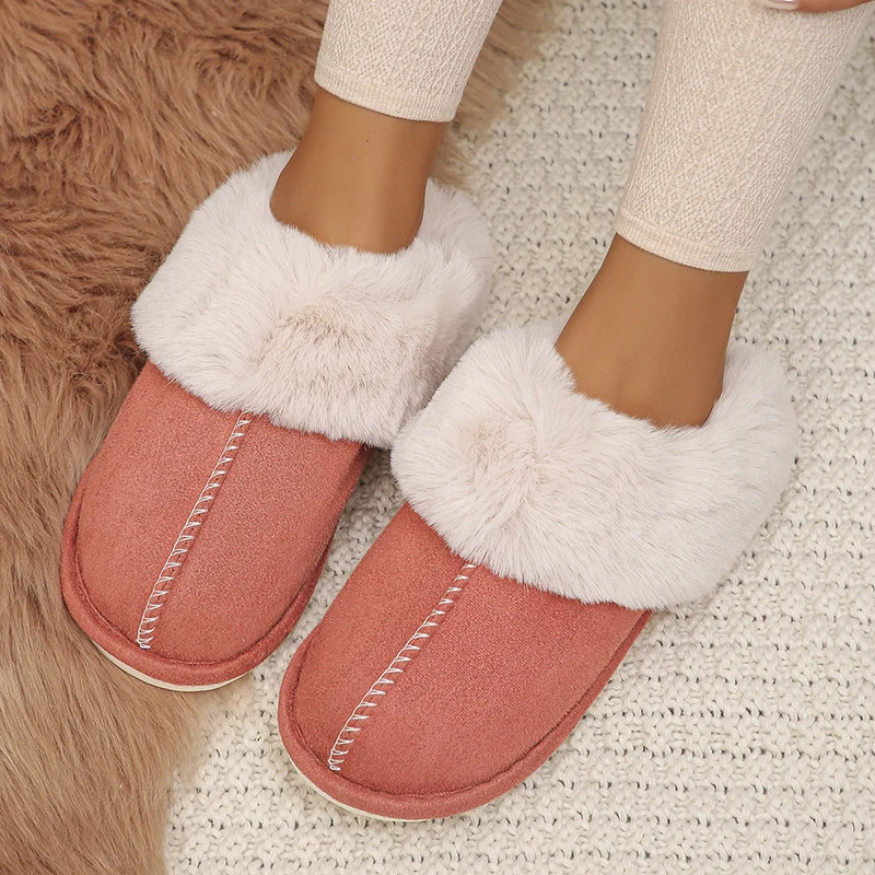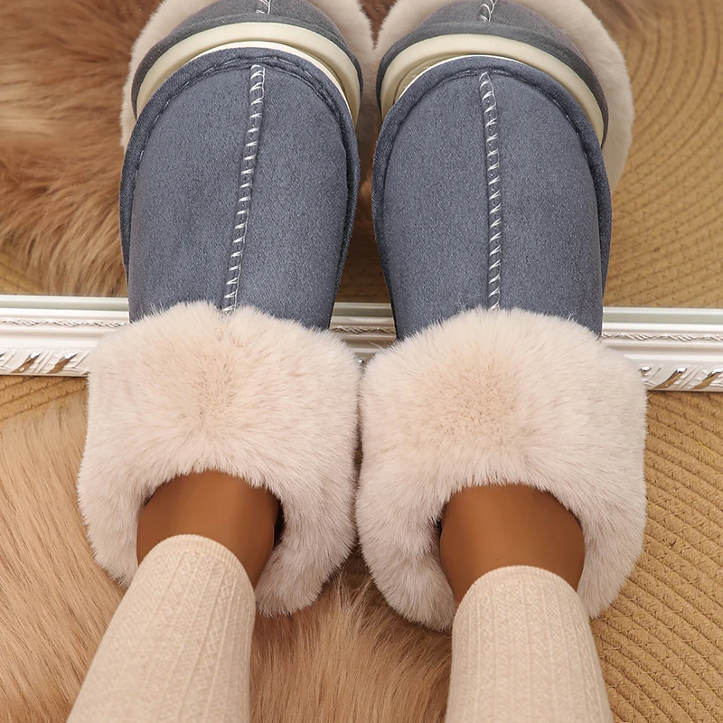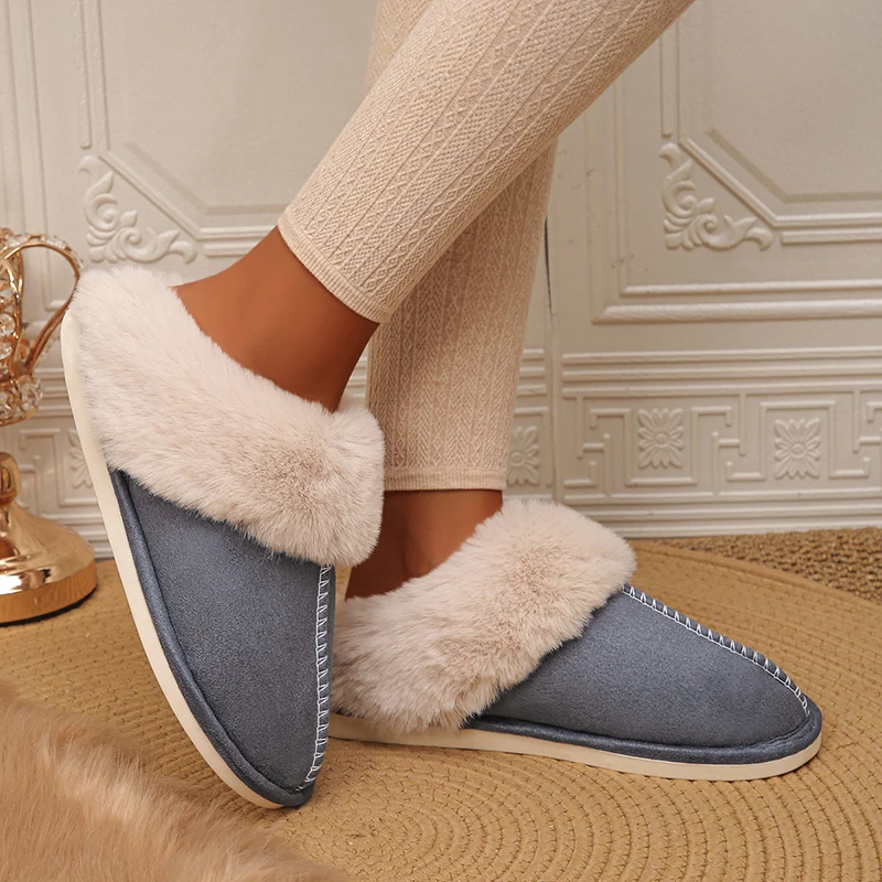 Color: Dark Grey, Shoe Size: 44 - Closed Toe Warm Cotton Slippers Women Faux Fur Thicken Plush Winter Home Shoes Woman Lightweight Casual Indoor Slides Female