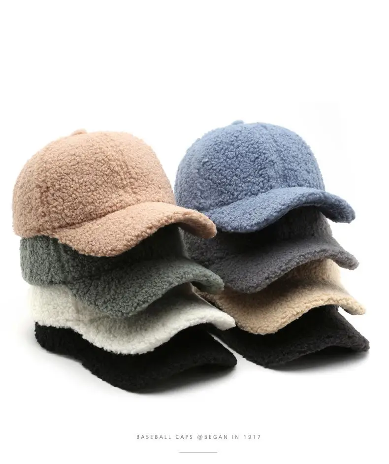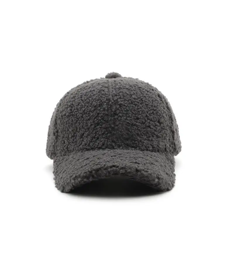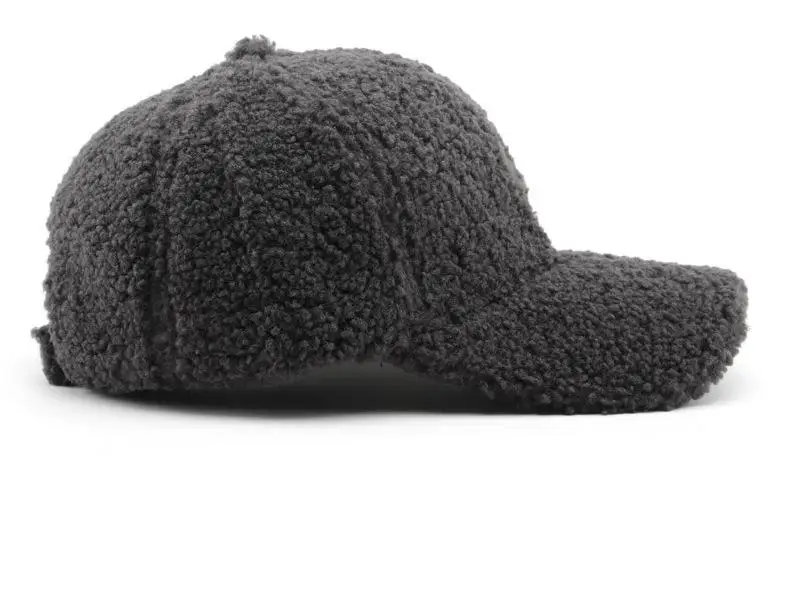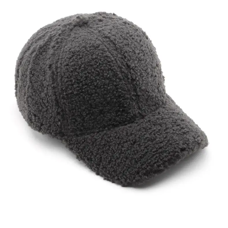 Color: Dark Grey, Size: M - Autumn Winter Baseball Cap Women Artificial Lamb Wool Hats Keep Warm Cap Plush Baseball Caps Spring Baseball Cap Solid Sunshade