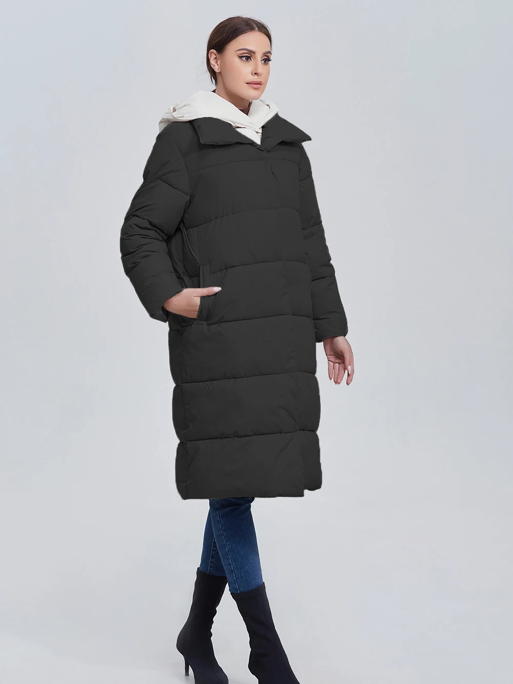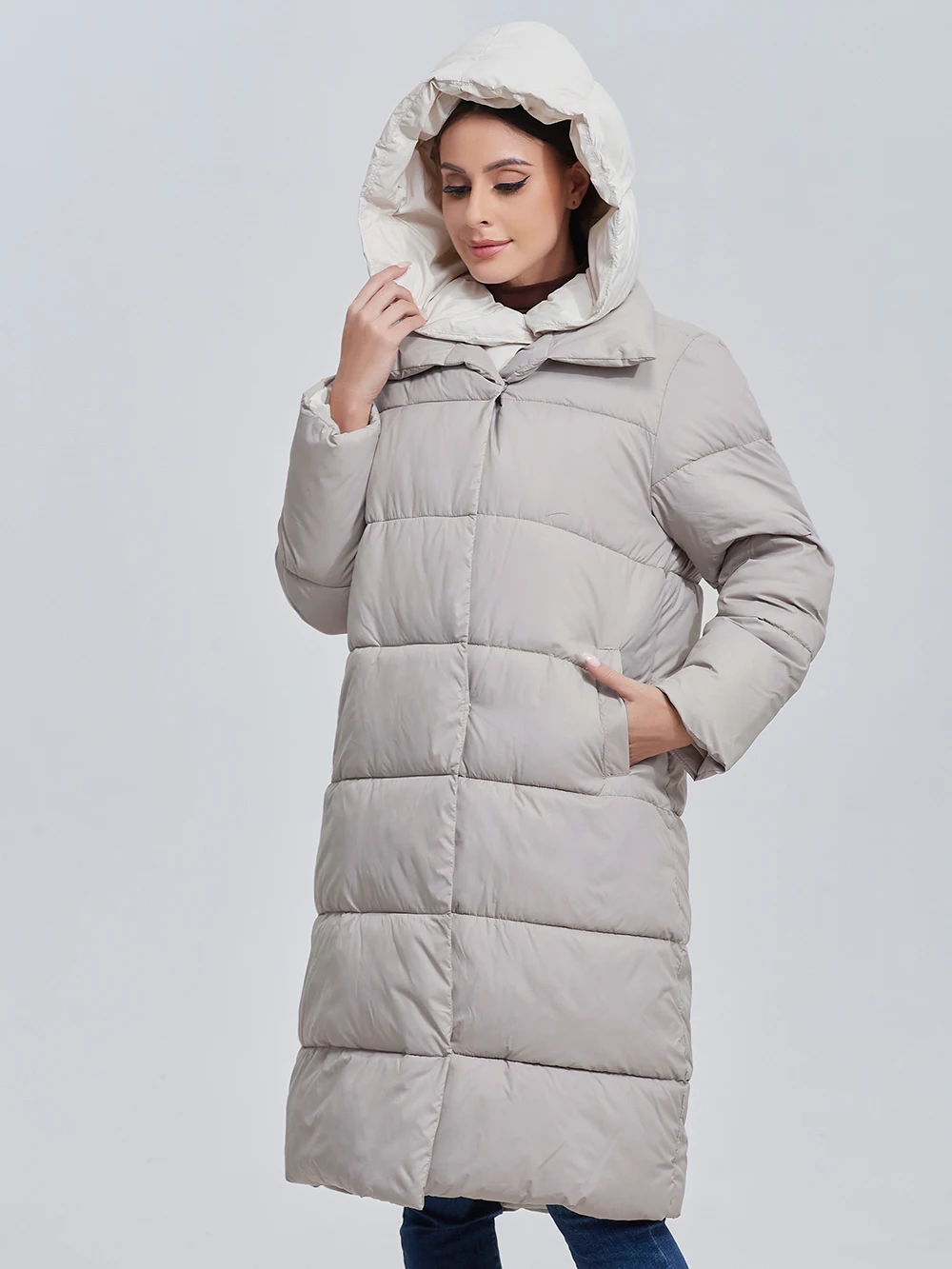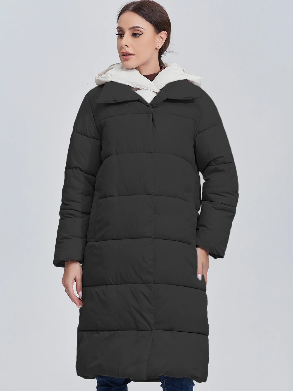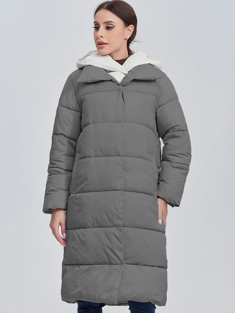 Color: Dark Grey, Size: M - Marwin 2023 Winter Elegant Women's Cotton Coat Stylish Collar Long Warm Hooded Jacket Female Windproof Parka