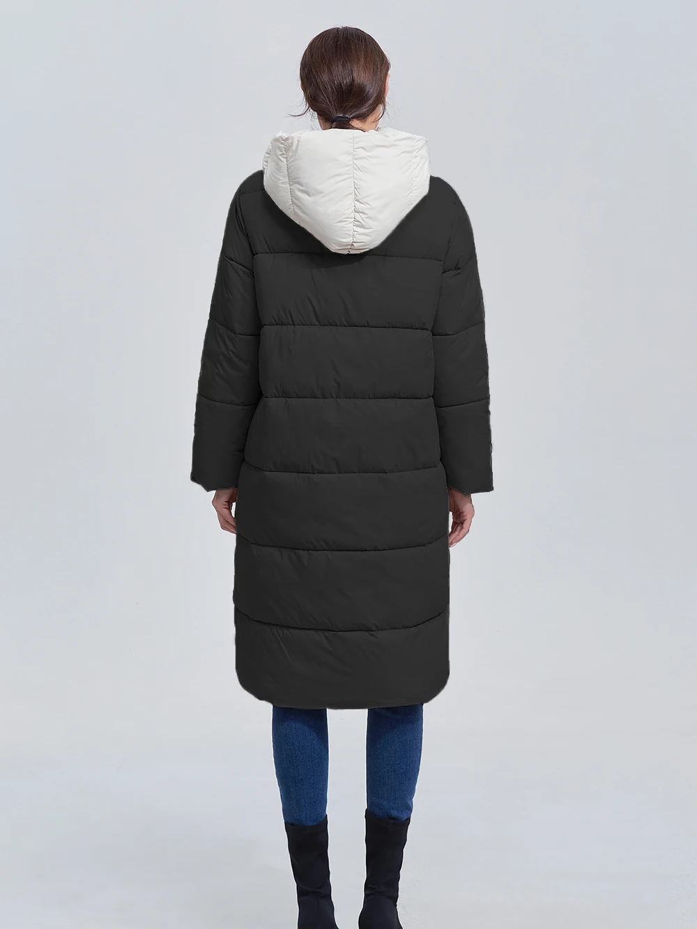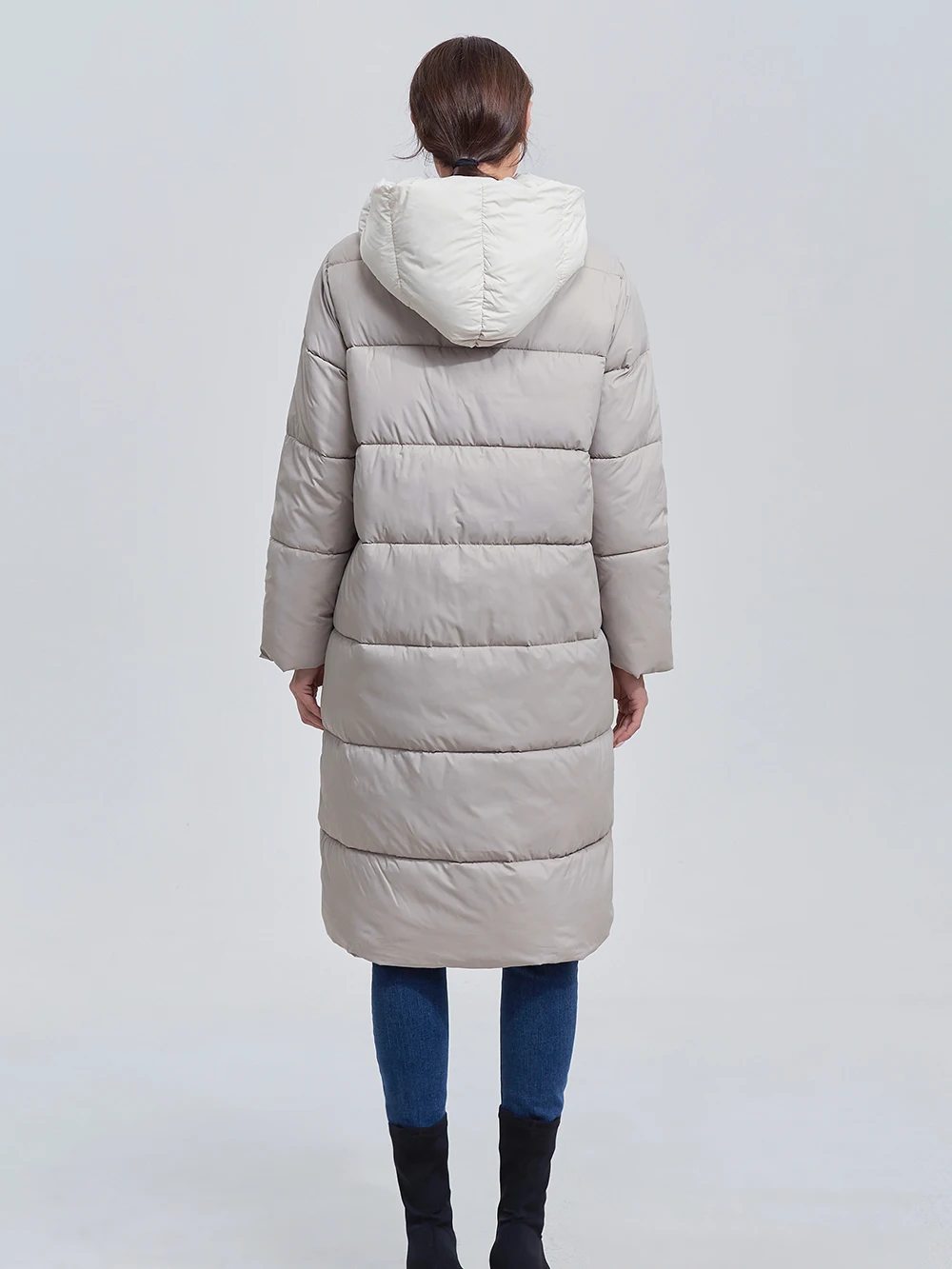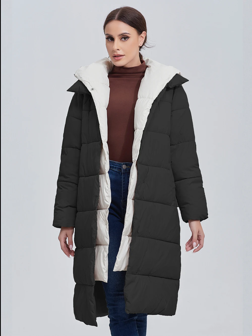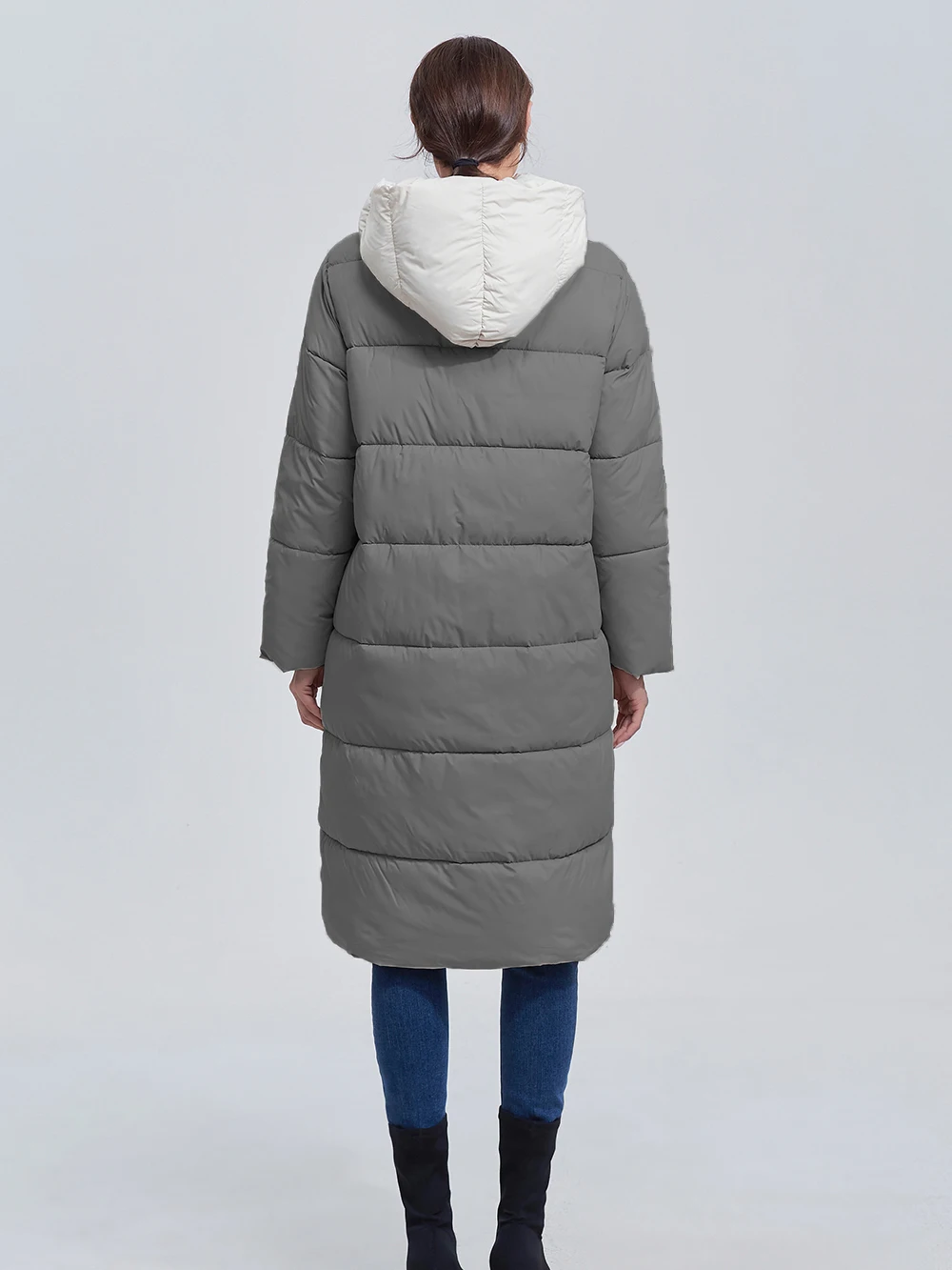 Color: Dark Grey, Size: M - Marwin 2023 Winter Elegant Women's Cotton Coat Stylish Collar Long Warm Hooded Jacket Female Windproof Parka
