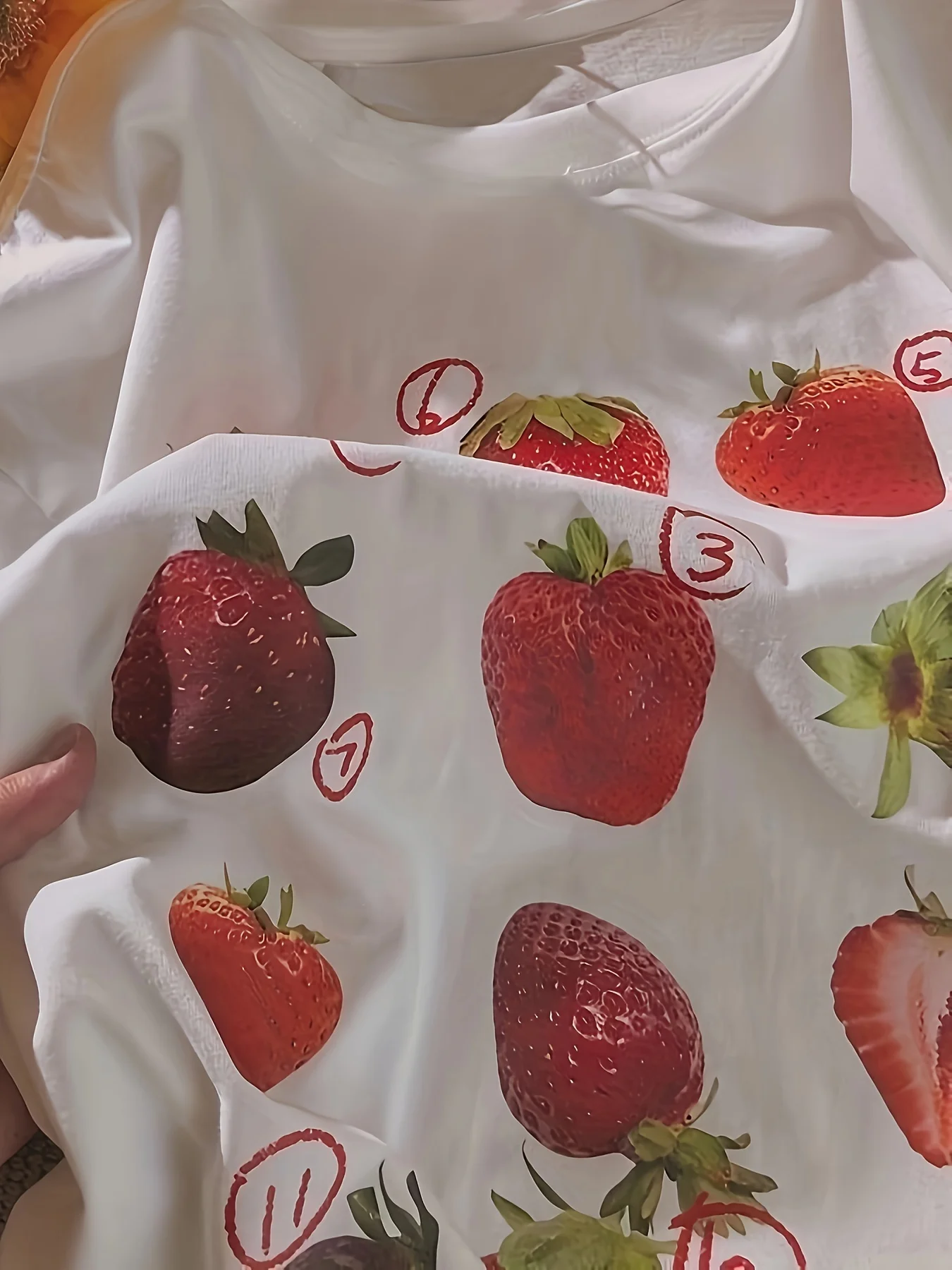 Color: Dark Grey, Size: S - 100% Cotton Women T-shirt Cute Fresh Strawberries Printed Tee Shirt Summer Comfortable Loose Tops Street Fashion Female Clothes