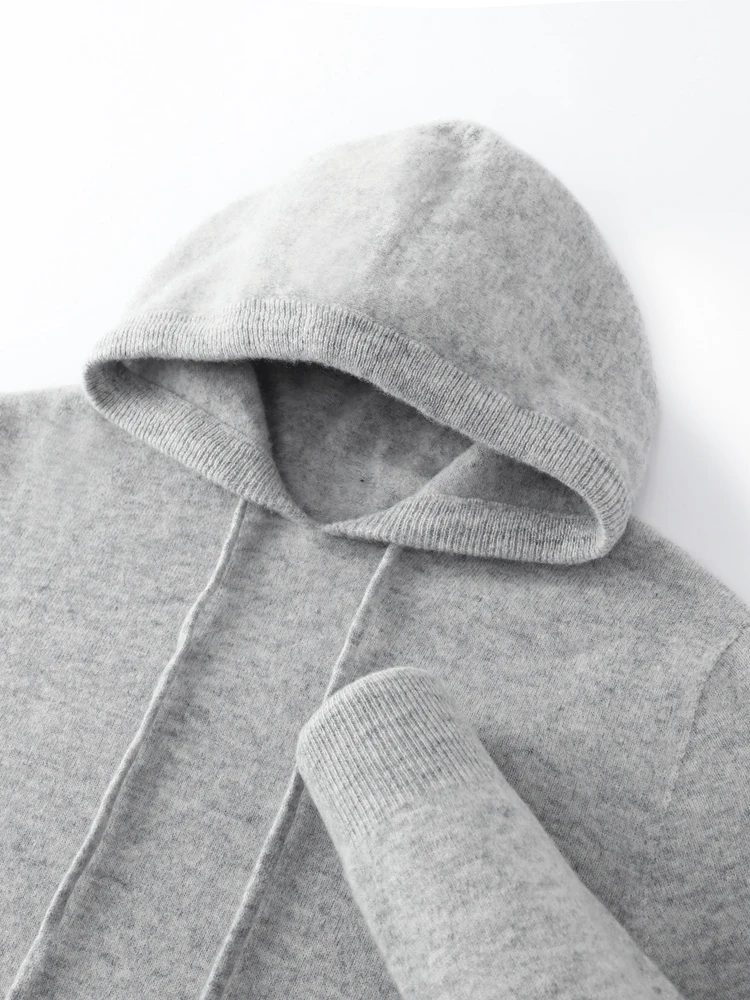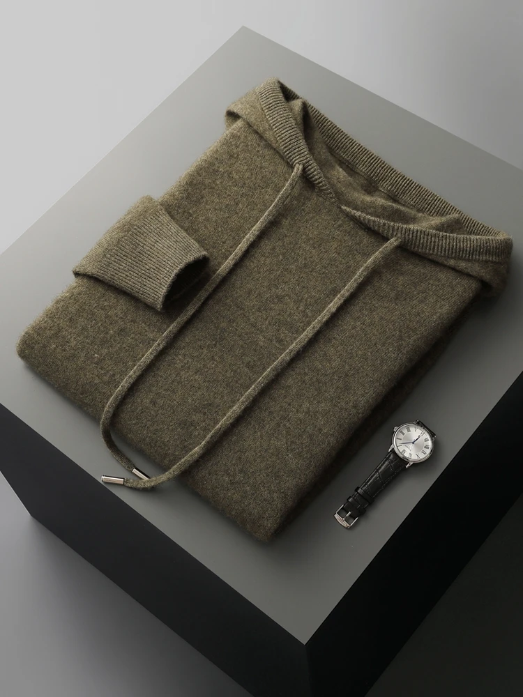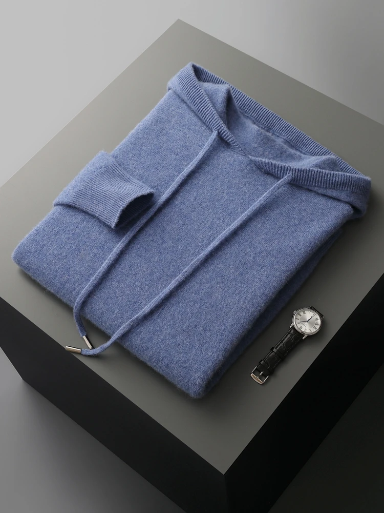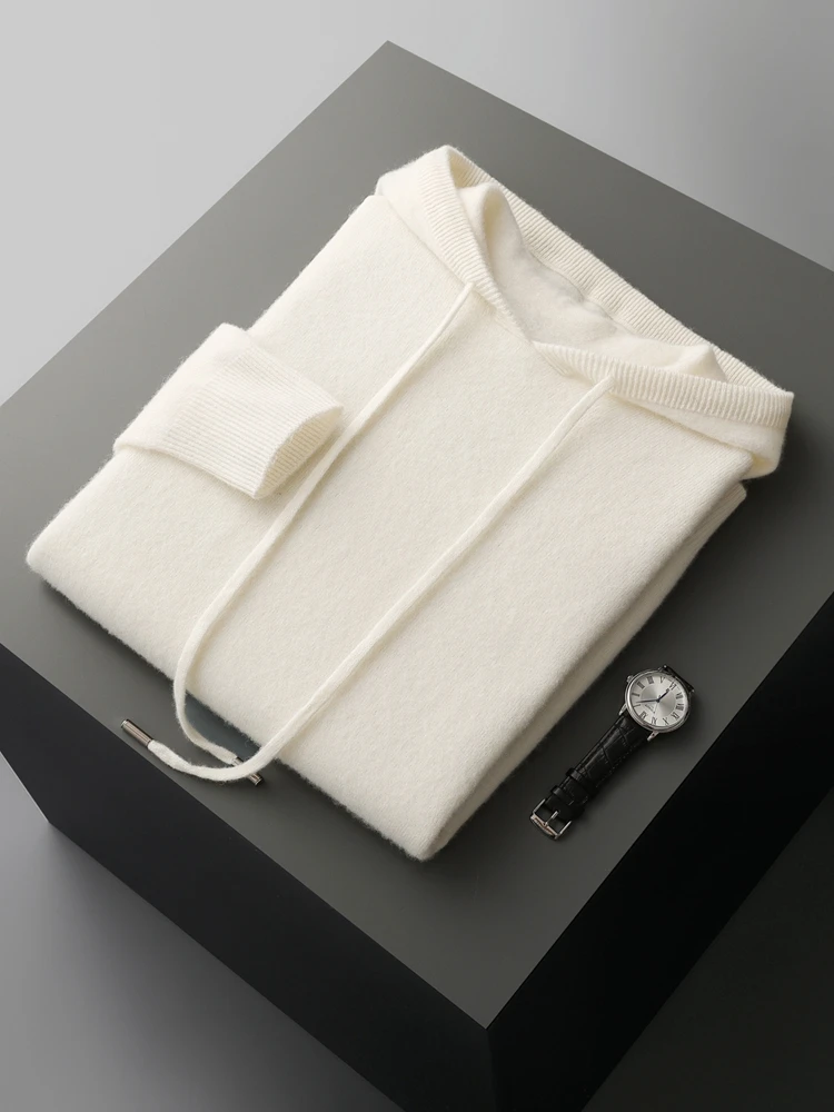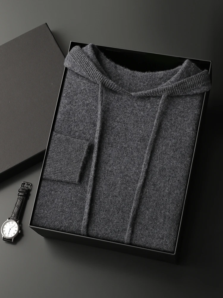 Color: Dark Grey, Size: XL - MEETCC Luxury Men Cashmere Hooded Pullover Thick Warm Hoodie Sweater Autumn Winter 100% Cashmere Knitwear Quality Jumpers Tops