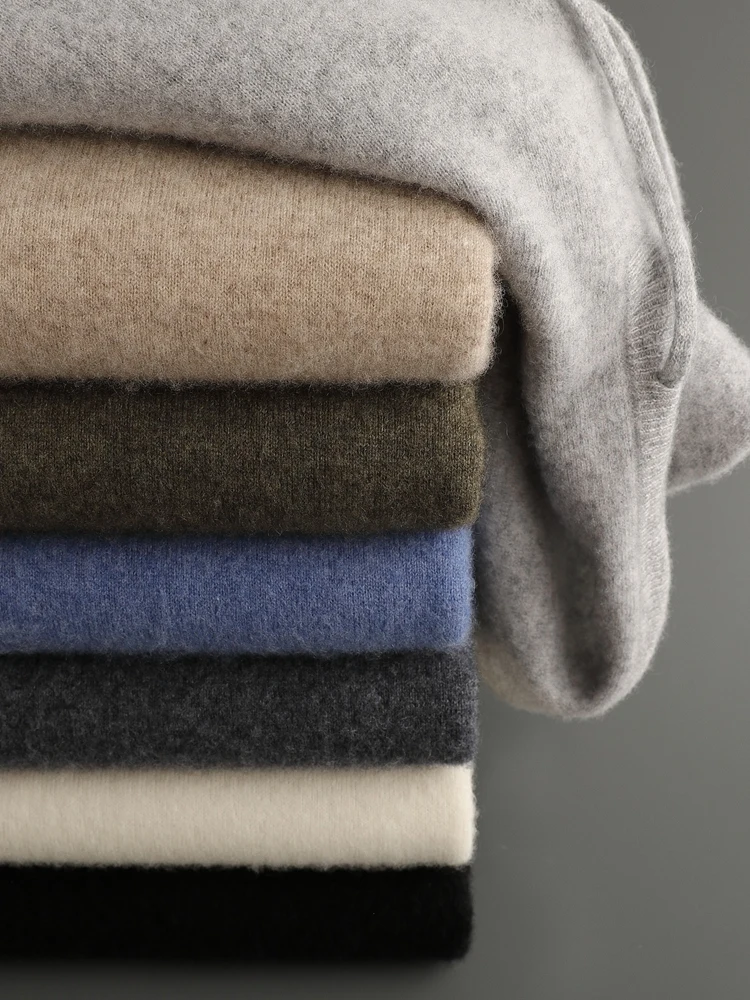 Fiber characteristics:The fiber diameter of cashmere is smaller than wool, the texture is more delicate and soft, and the scale structure of cashmere is smaller, making its thermal performance better than wool. Wool fibers are relatively thick, hard in texture, and not as warm as cashmere.