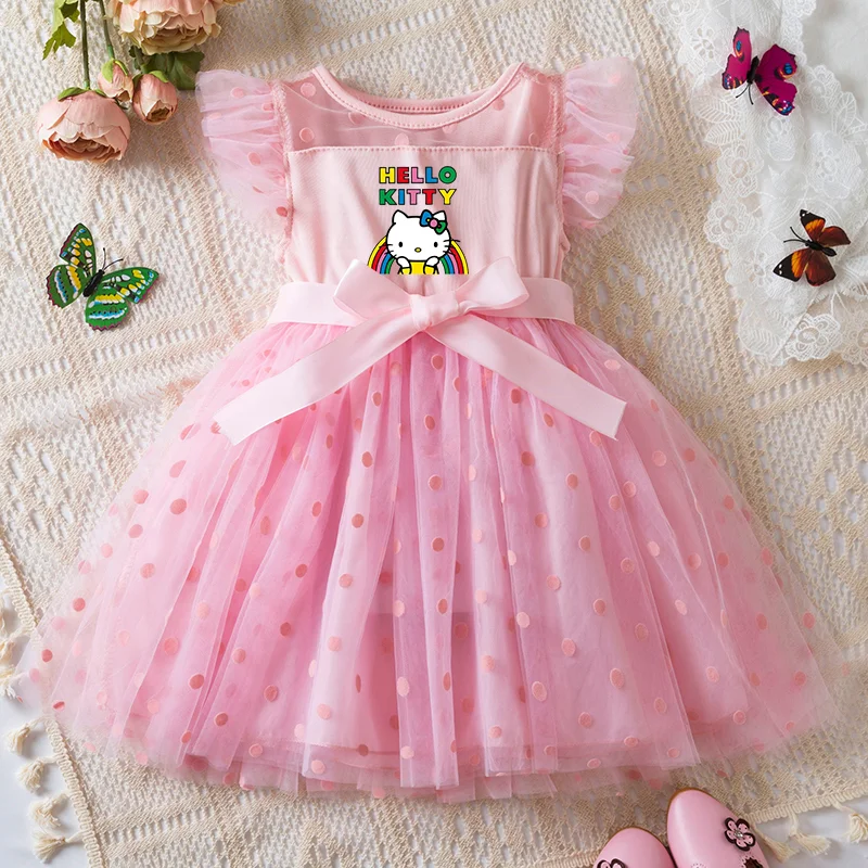 Color: Dark Grey, Size: XS - Hello Kitty 2-6Y Baby Girl Dress Princess Mesh Skirt Summer Sleeveless Wedding Party Dresses for Girls Summer