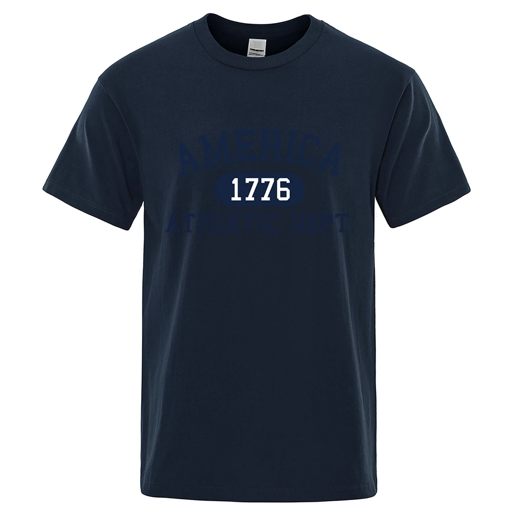 Color: Dark Grey, Size: XXL - America 1776 Athletic Dept Letter Tshirt Man Fashion Tee Clothes Summer Luxury T-Shirt Hip Hop Breathable Cotton Tee Clothes