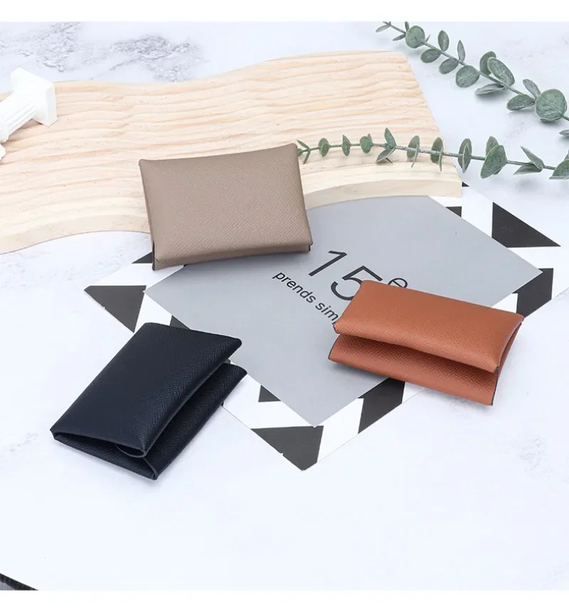 Color: Dark Khaki - Genuine Leather Coin Pouch Change Holder Mini Snap Pocket Wallet for Men Women Luxury Designer Credit Card Holder Coin Purses