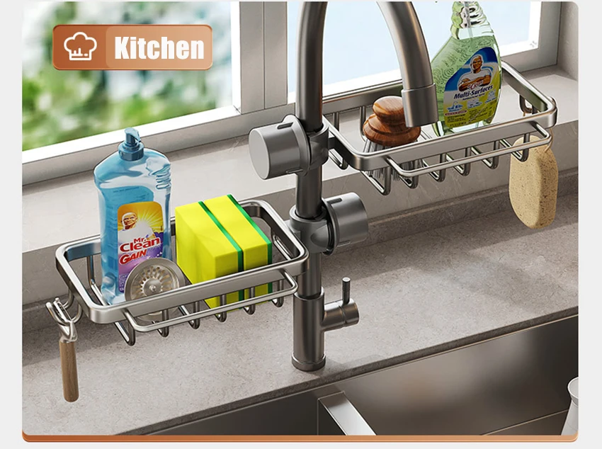 New Rust-proof Kithen Faucet Drainer Rack Sponge Towel Holder Shelf Bathroom Soap Organizer Stand Sink Accessories Storage Stand