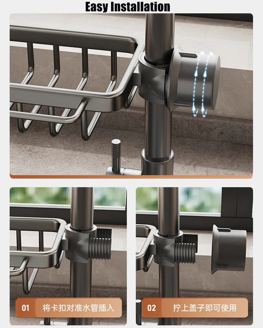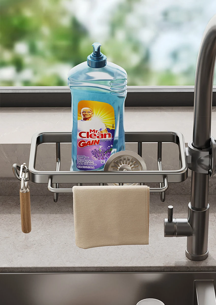 Color: Dark Khaki - New Rust-proof Kithen Faucet Drainer Rack Sponge Towel Holder Shelf Bathroom Soap Organizer Stand Sink Accessories Storage Stand