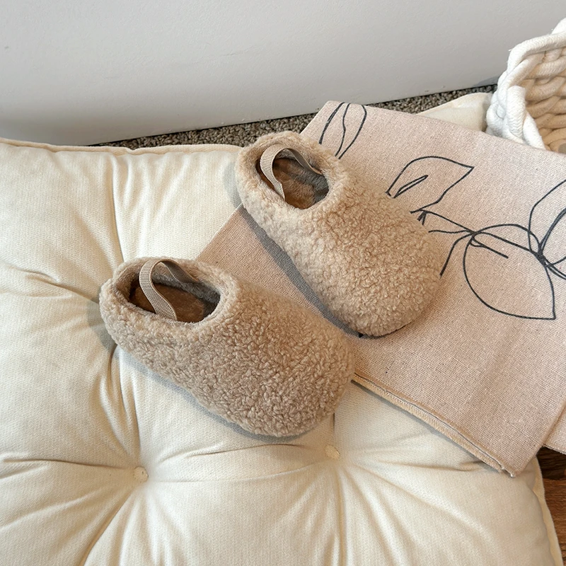 Color: Dark Khaki, Shoe Size: 26.5 - Teddy Fur Mule For Baby Kids Winter Warm Plush Slipper Toddler Child Casual Pull-on Fluffy Cotton Shoe with Back Elastic Strap