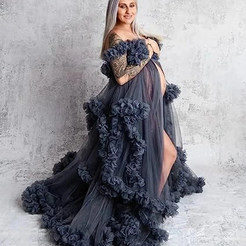 Color: Dark purple, Maternity Size: M, Ships From: CHINA - Tulle Long Maternity Dress Photoshoot п?»?°?‚ь?µ photography dresses baby shower dresses for pregnant woman п?»?°?‚ь?µ д?»я ?±?&mi