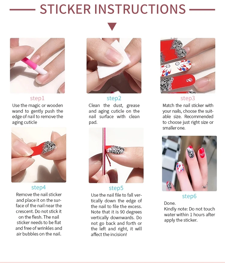 2.Choose a nail sticker of appropriate size( Don't touch the glue );