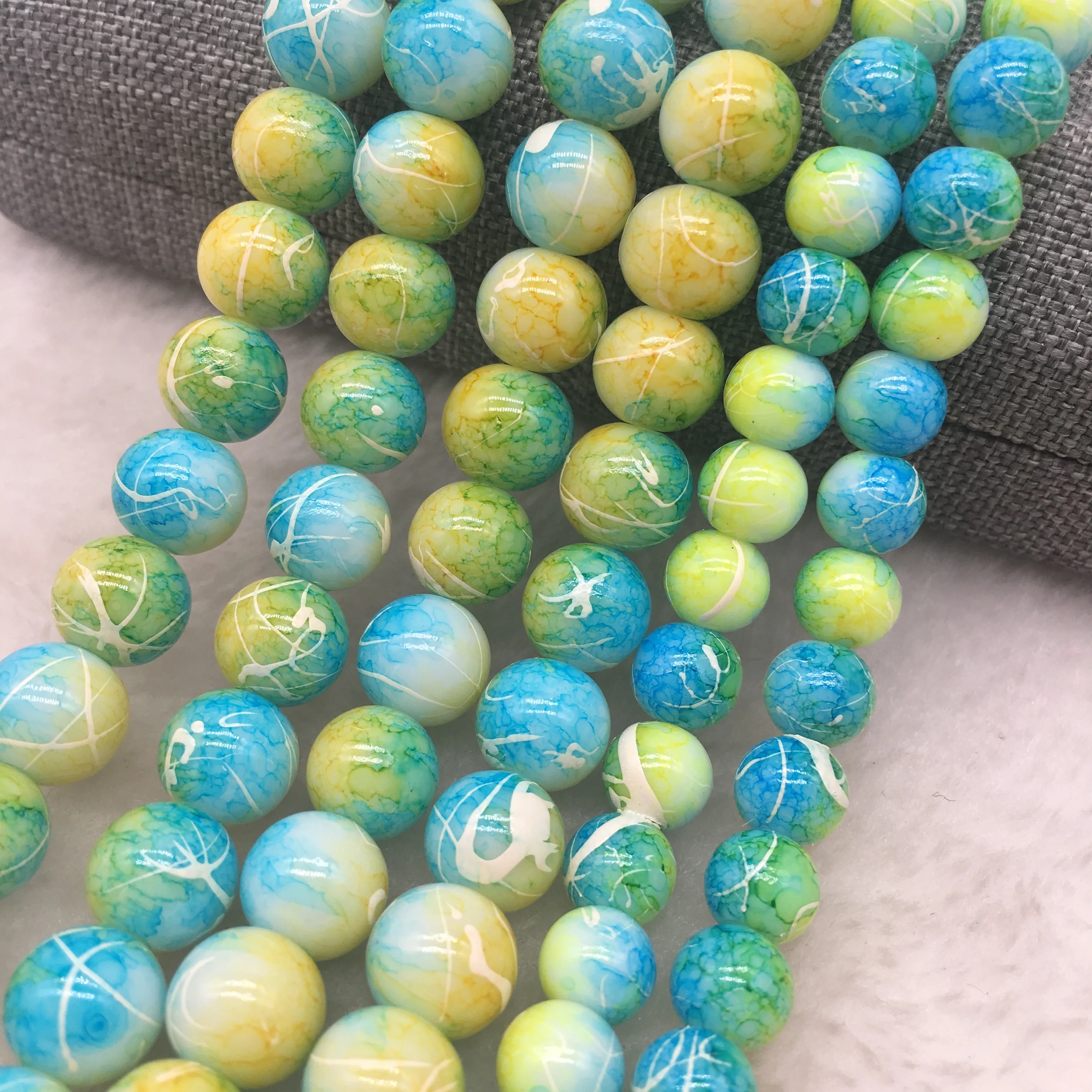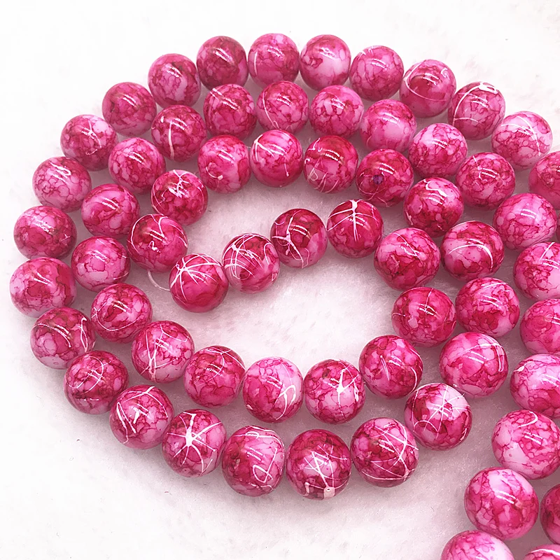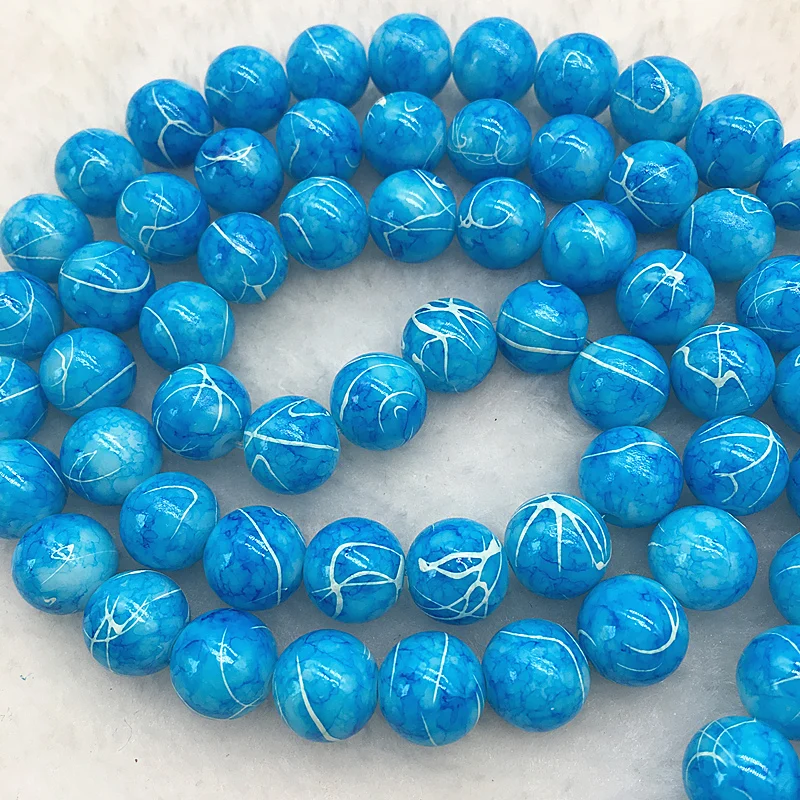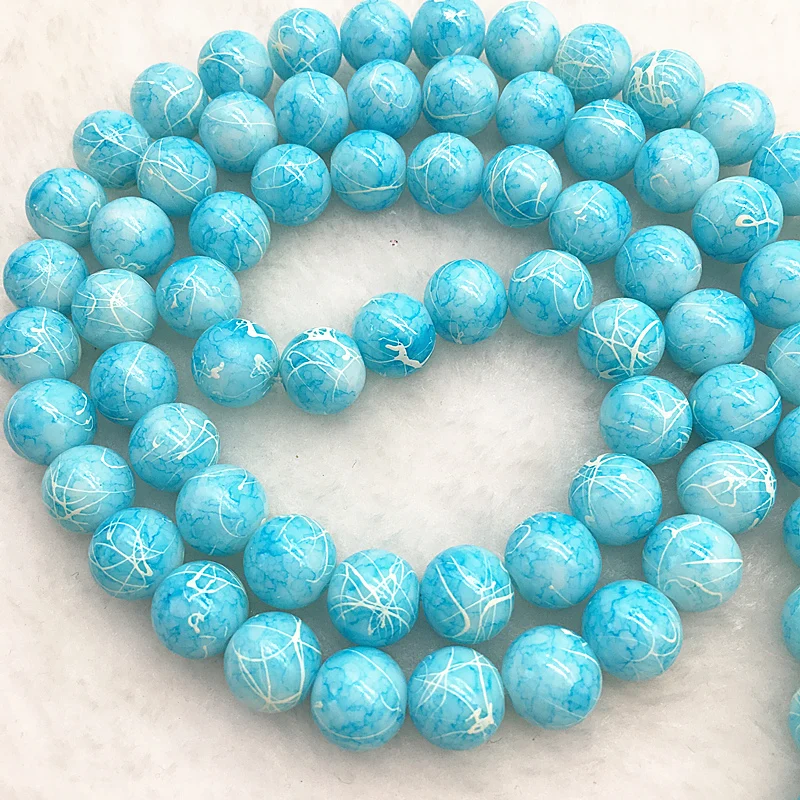 Color: DEEP BLUE, Item Diameter: 4mm - Wholesale 4/6/8/10mm Glass Beads Round Loose Spacer Beads Pattern For Jewelry Making DIY Bracelet Necklace