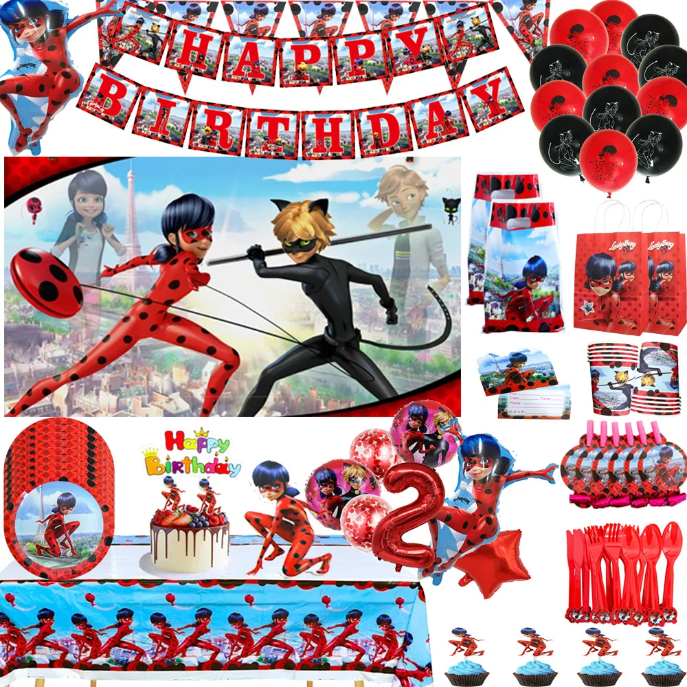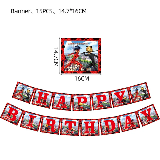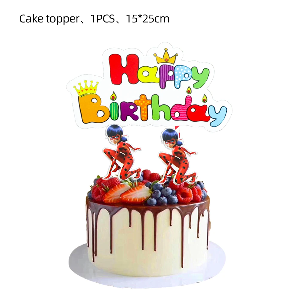 Color: DEEP BLUE - Red Girl Party Supplies Lady bugg theme birthday party cake topper flag banner decoration gift children happy birthday party