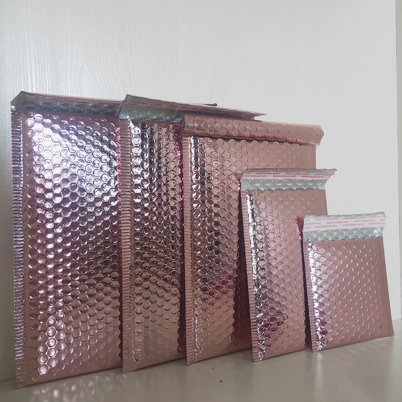 Multi-Size Rose Gold Aluminum Foil Shipping Mailing Bags Waterproof Express Bubble Bags for Gift Packaging Envelope