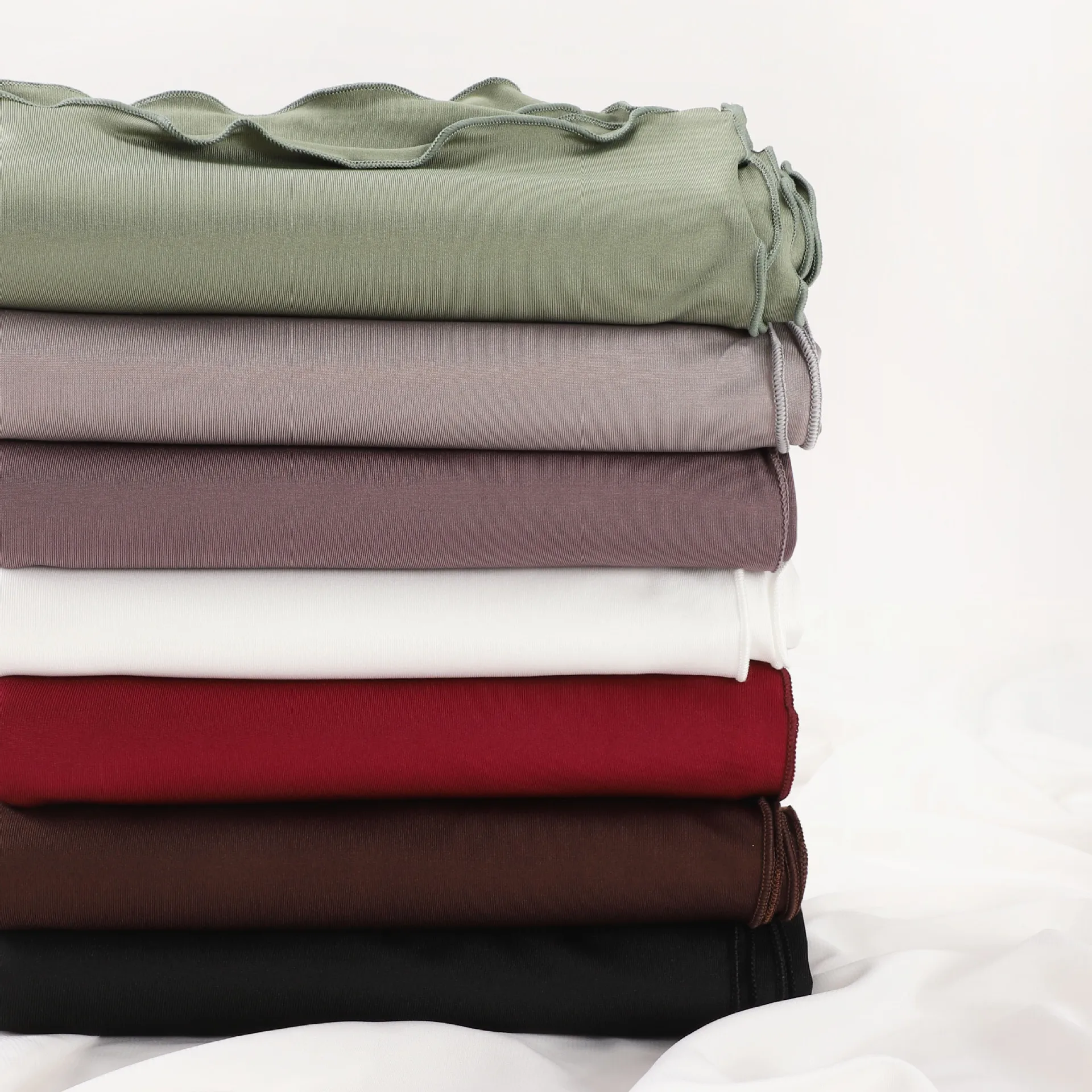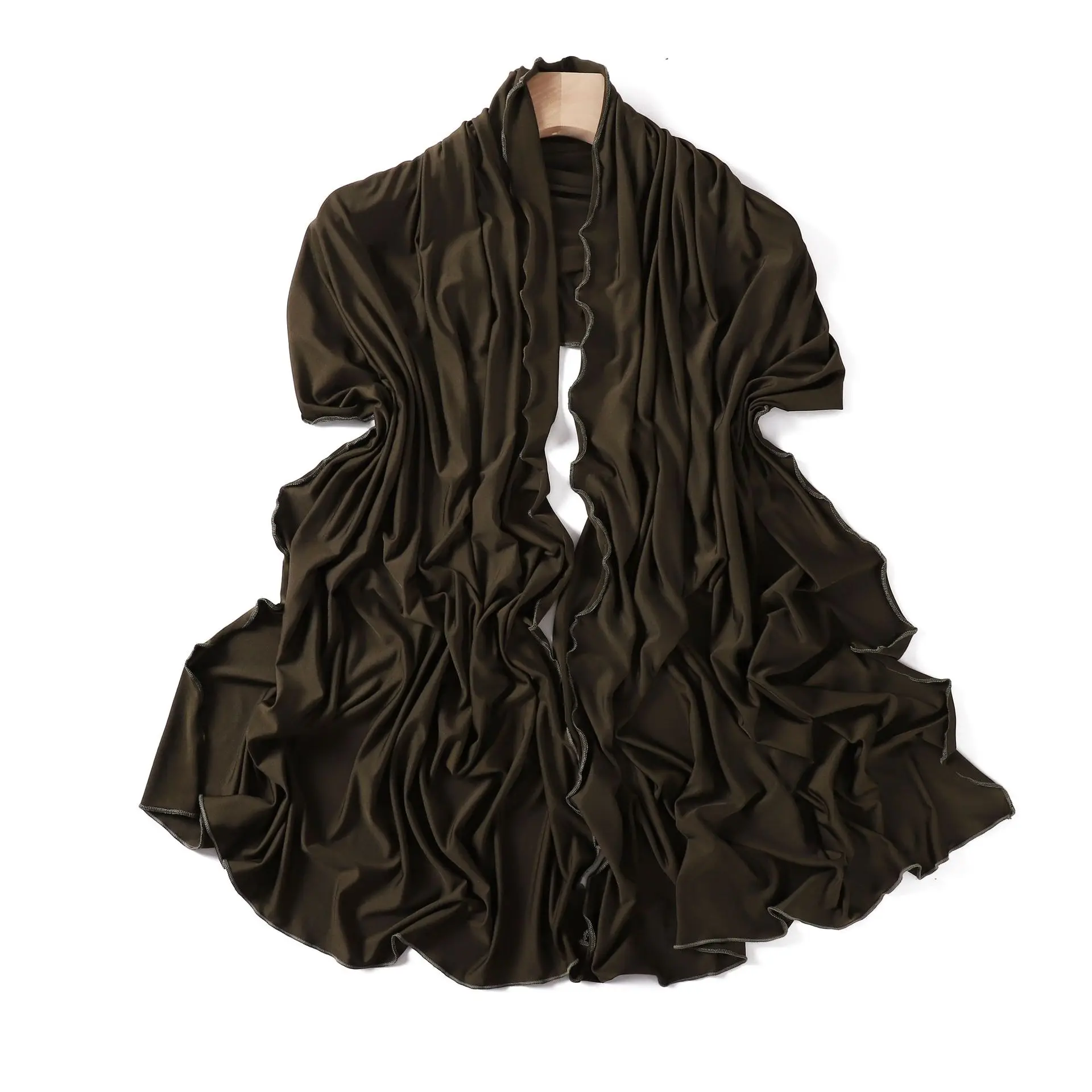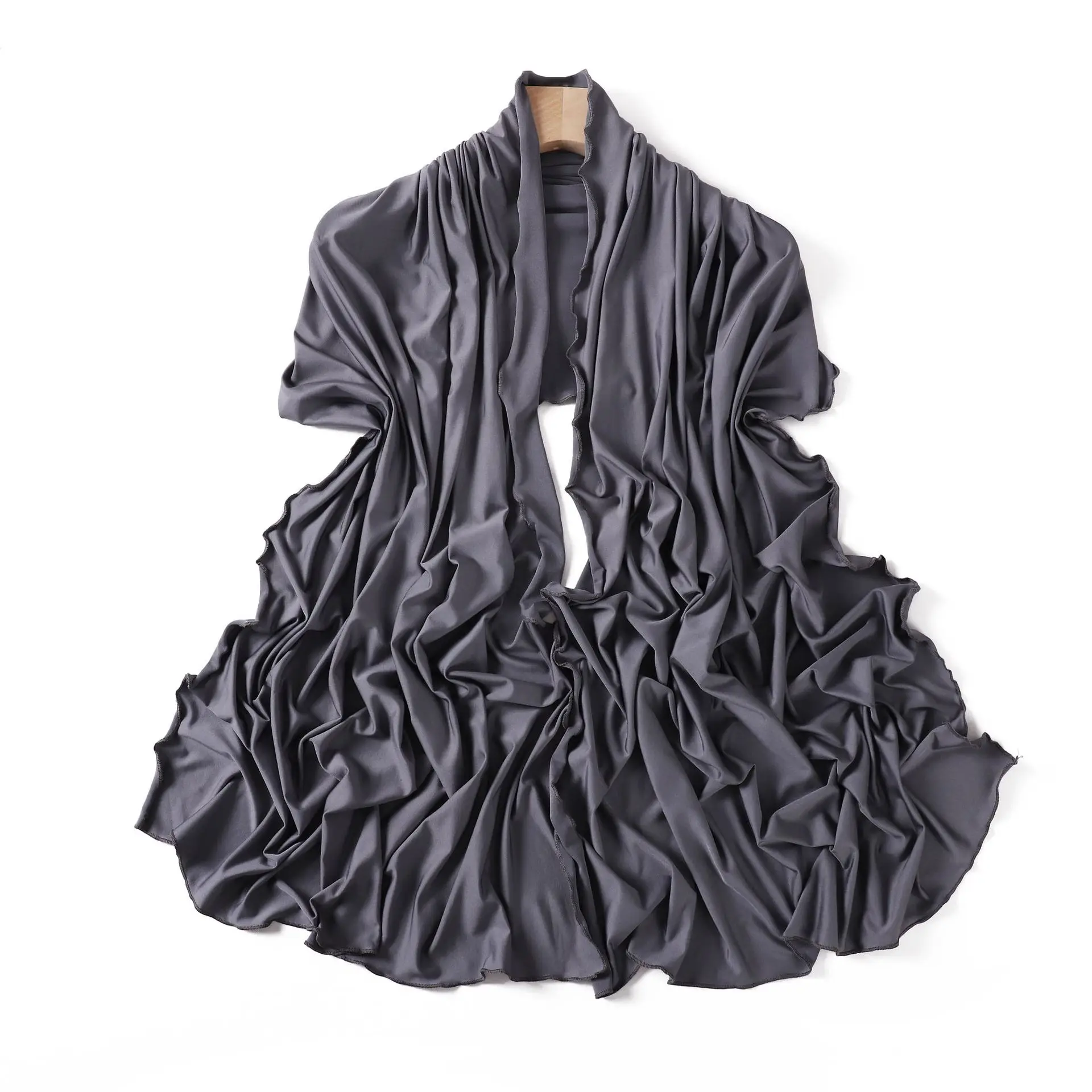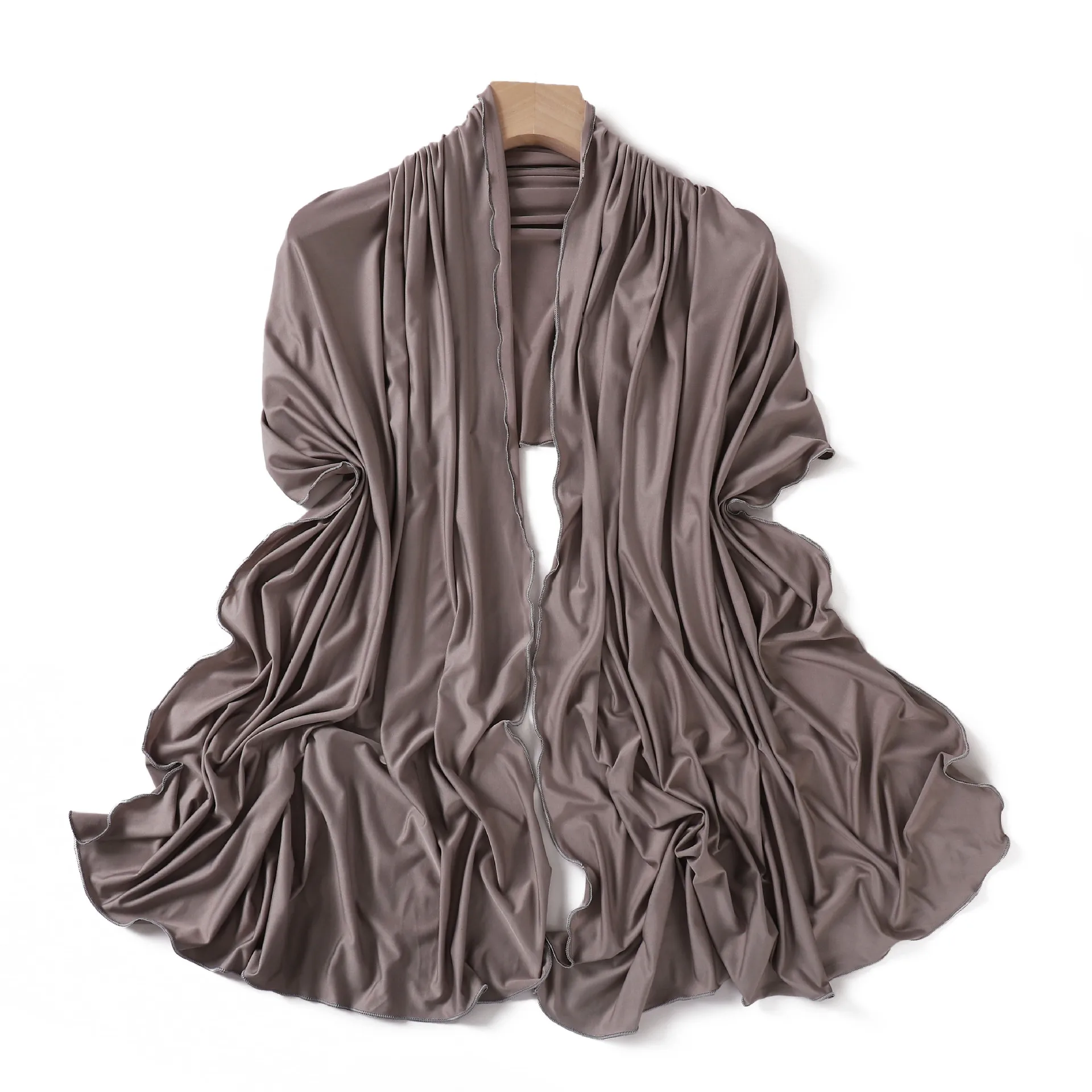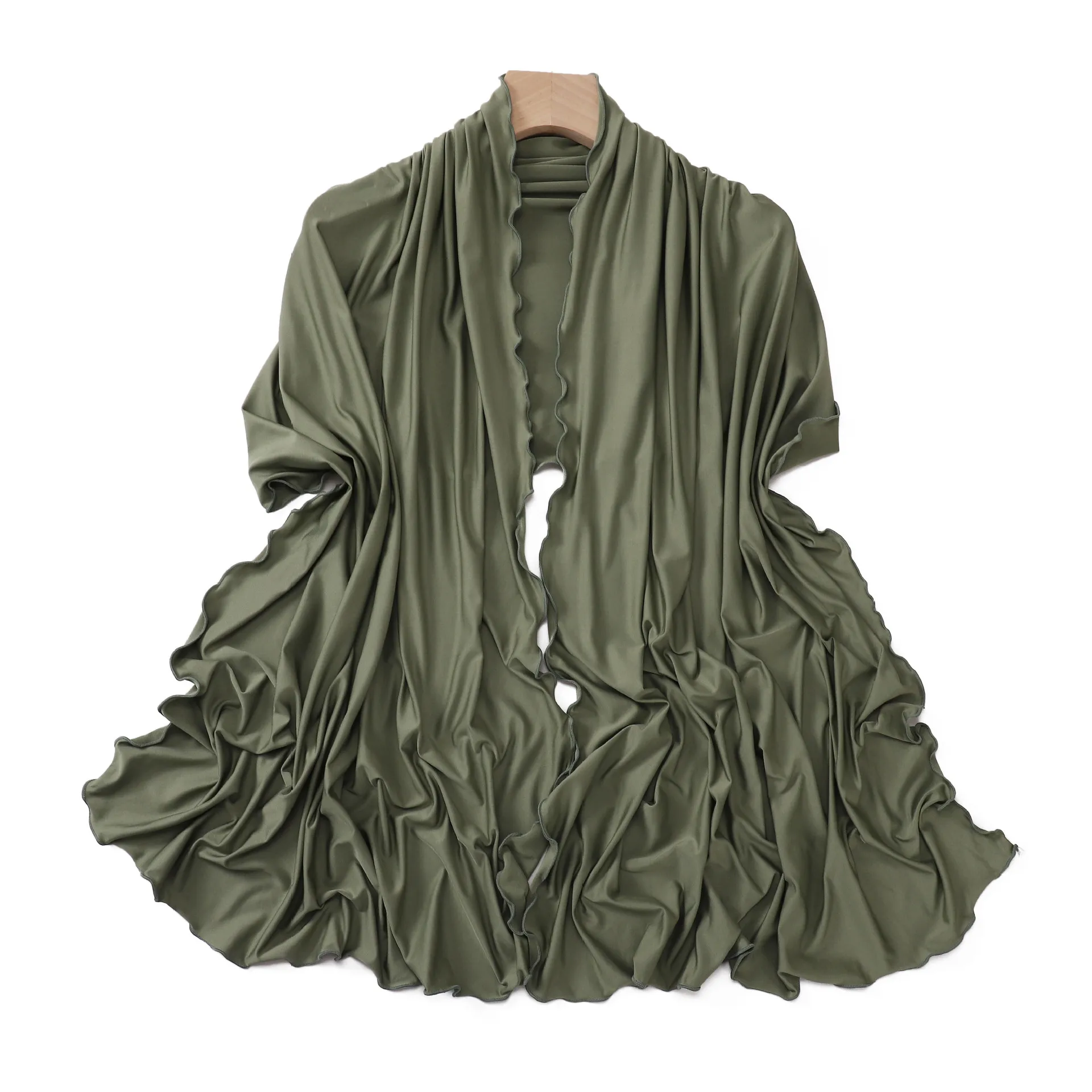 Color: Dusty Pink - Luxury Wavy Edge Jersey Hijab for Women Solid Color Milk Silk Scarf Headscarf Autumn Shawl Stretchy Chiffon Scarf Ramanda