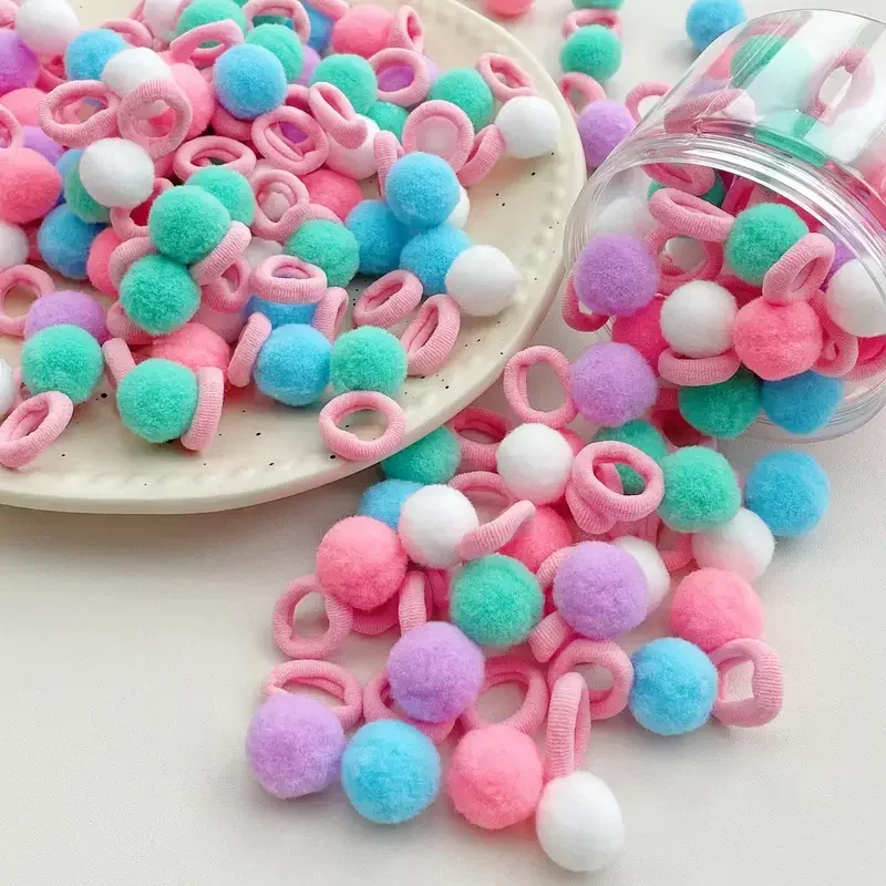 Color: Emerald Green - 10/30Pcs Children Hairbands No Harm Hair Cartoon Towel Rope Ponytail Holder Kids Mini Rubber Band Headwear Girls Halloween Gift