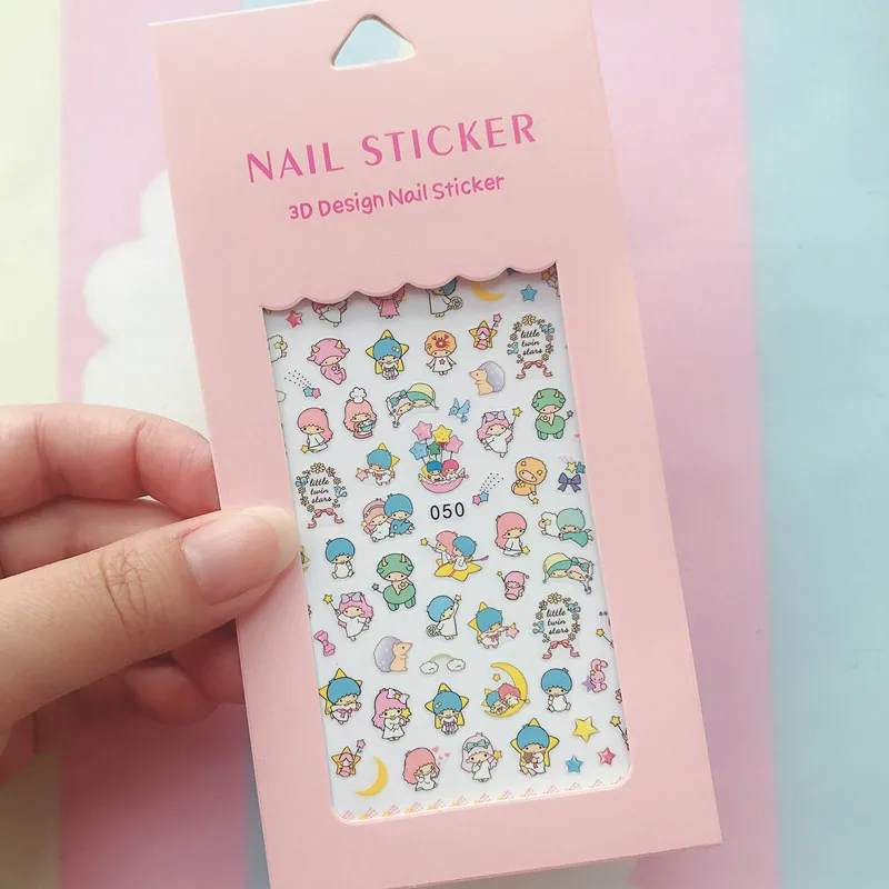 Color: Field Green - 1PCS Hello Kitty 3D Nail Stickers Press on Nails Mickey Mouse Donald Duck Stitch Cartoon Stickers Nail Art Decoration