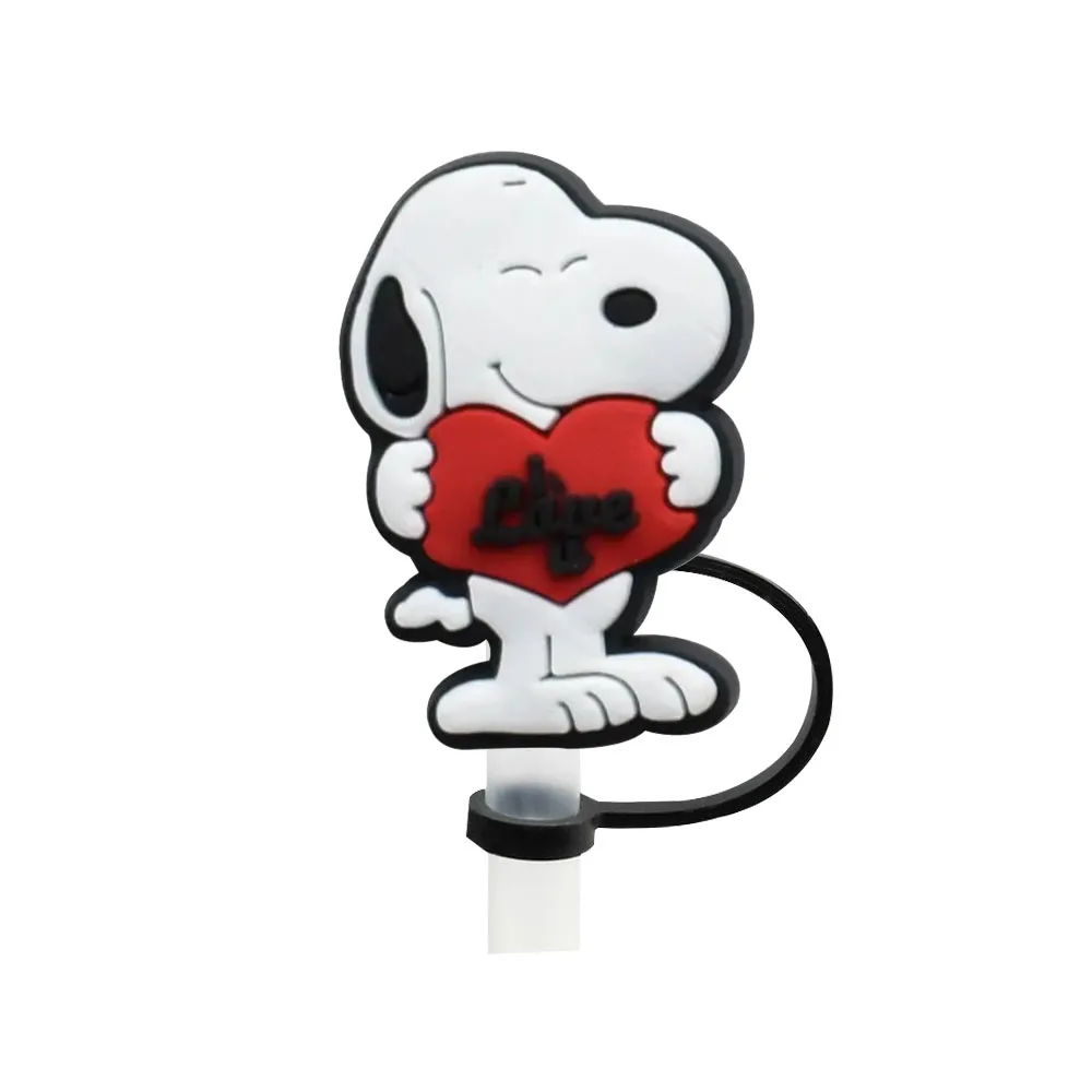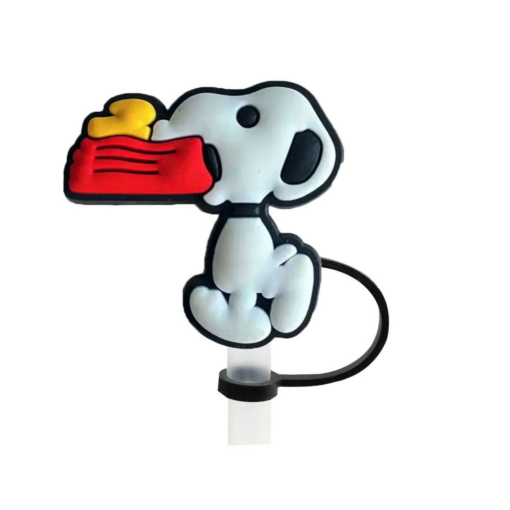 Color: Gold - 1-12PCS Cute MINISO Snoopy Straw Cover Cap With 30&40Oz Cup10mm Straw Toppers Reusable Dust-Proof Straw Caps Cartoon Drink Stra