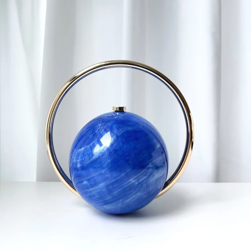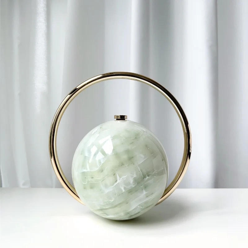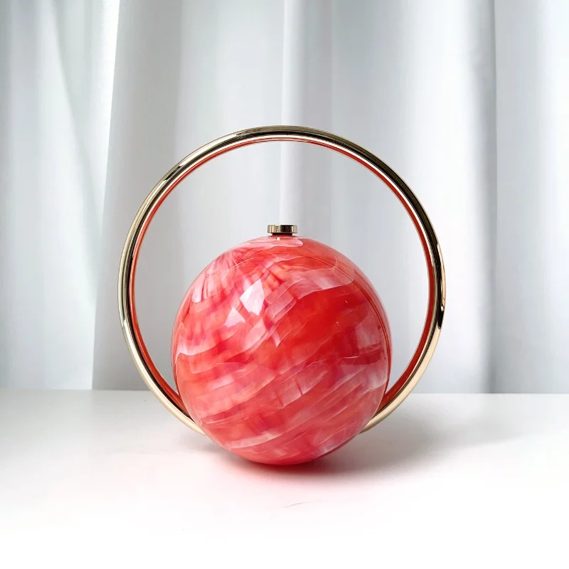 2025 New Marble Pattern Spherical Banquet Bag for Women Trendy Electroplated Handle PVC Handbag Lady Mini Purse Evening Clutch