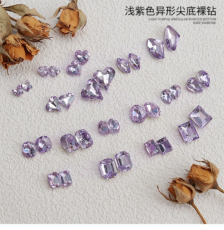 product name | New 10pcs/Bag Nail Art Light Purple Sparkling Crystal Glass Diamond Violet Pointed Bottom Bare Diamond Series Nail Accessories |