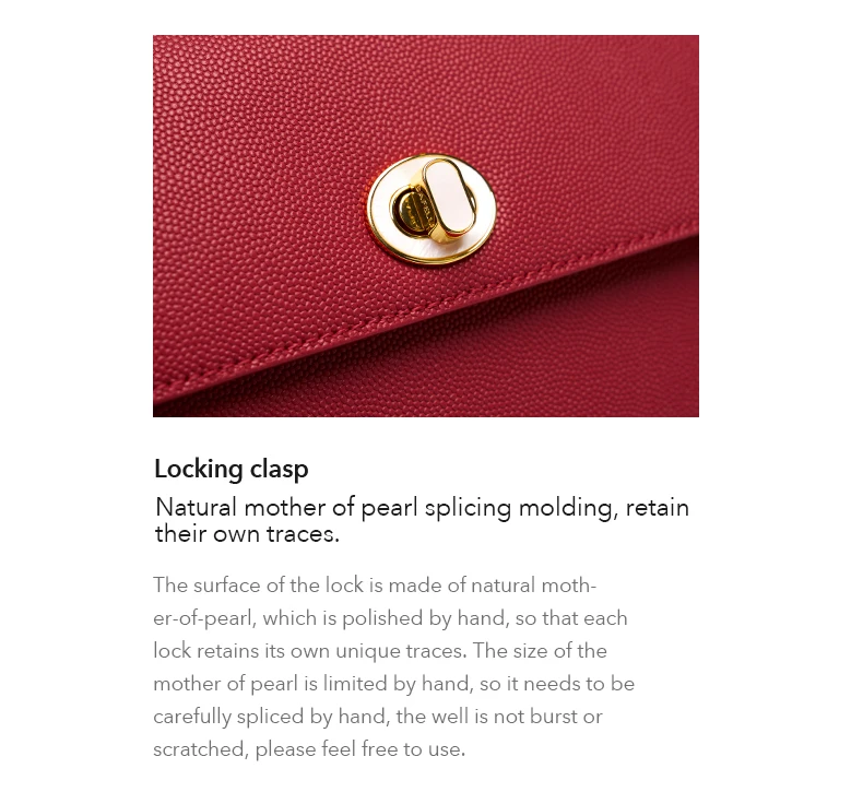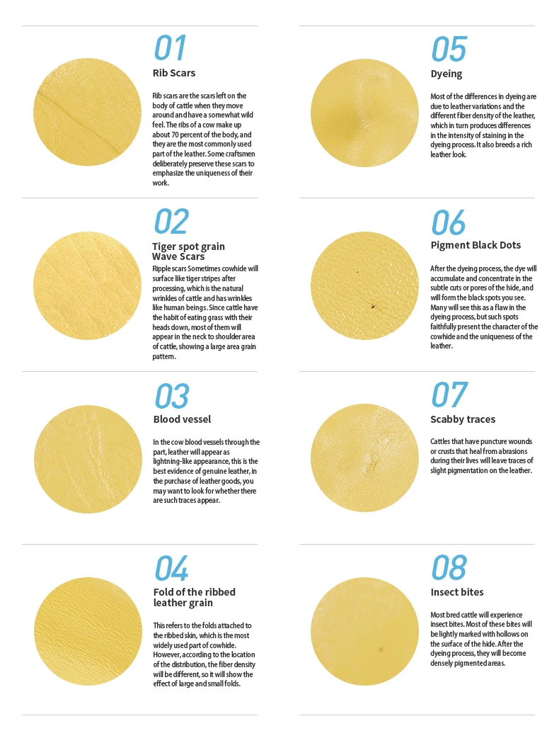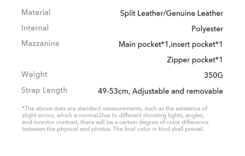 This bag is made of high-quality cowhide, the cowhide coating used is light and thin, the leather surface is entirely different from the artificial leather artificial processing properties, fully retains the original characteristics of leather, it doesn't defect, you can choose not to buy it if you mind the natural marks; at the same time, the natural cowhide's features make the leather have highly valued. Natural cowhide has better breathability, tactile toughness, and plasticity; they are used in the environmental craft; the products from this craft process are durable and have a specific collection value.