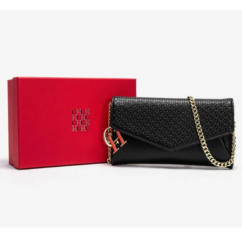Color: Gold - Carolina Herrera Women's Travel Versatile Shoulder Bag Crossbody Bag Mobile Phone Lipstick Storage Bag with Chain Shoulder Bag
