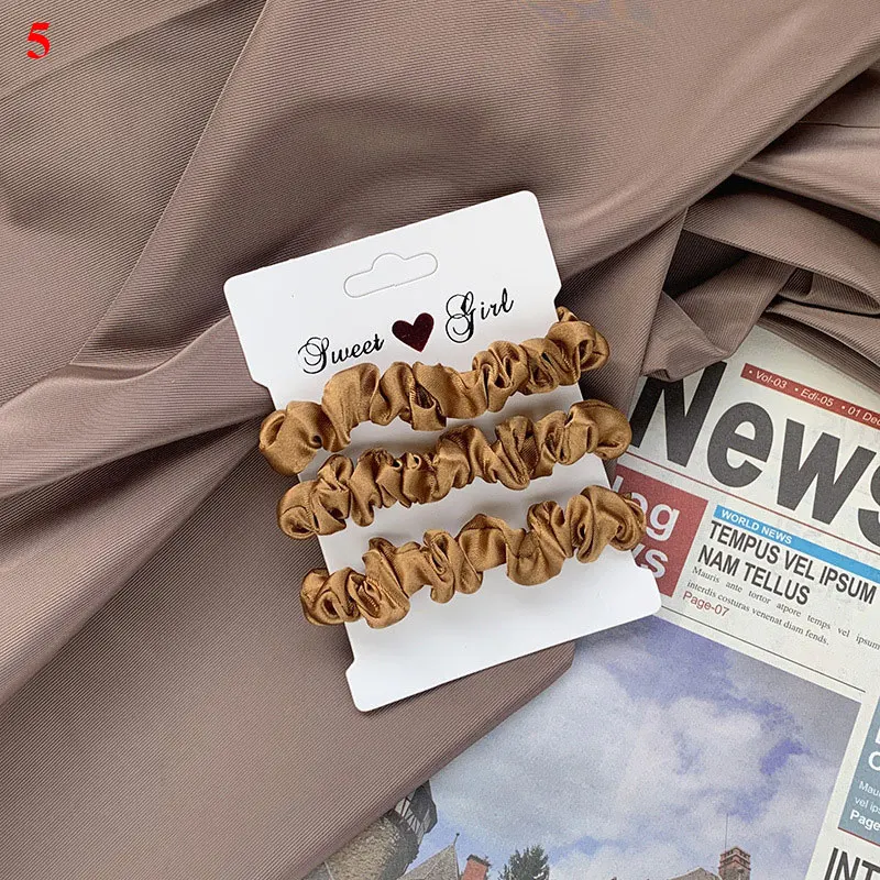 Color: Gold - Free Shipping 3PCS/Set Satin Silky Scrunchies Hair Rope Luxury Solid Color Elastic Hair Bands Women Hair Accessories Headwear