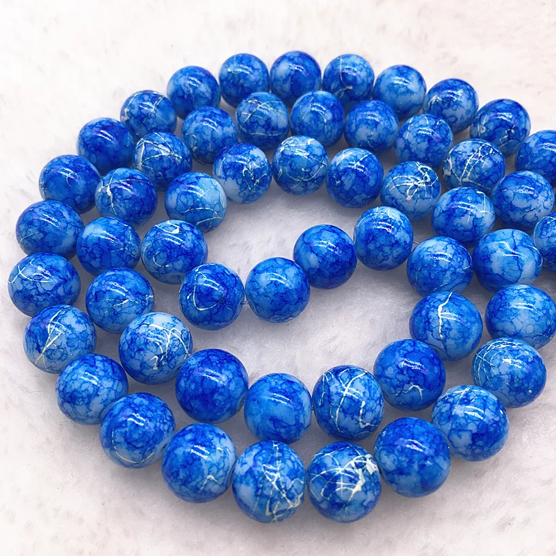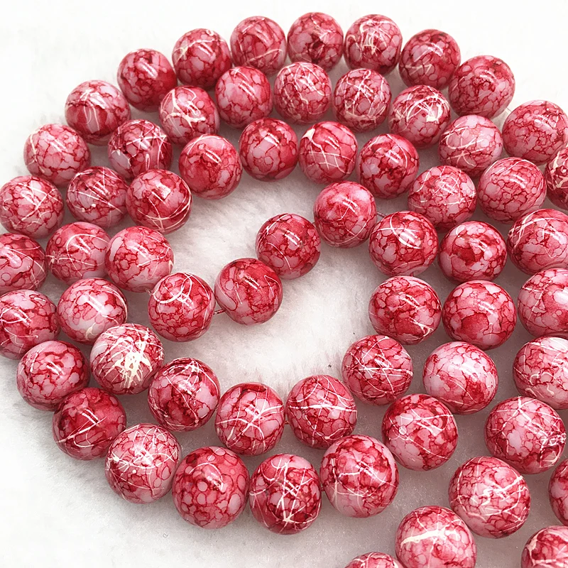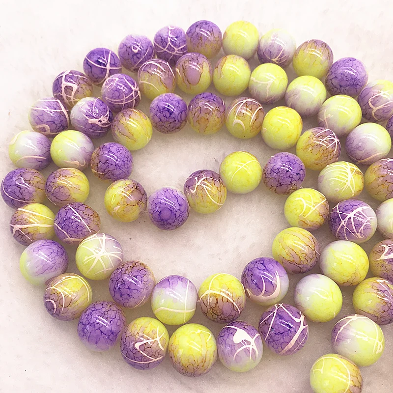 Color: Gold, Item Diameter: 6mm - Wholesale 4/6/8/10mm Glass Beads Round Loose Spacer Beads Pattern For Jewelry Making DIY Bracelet Necklace