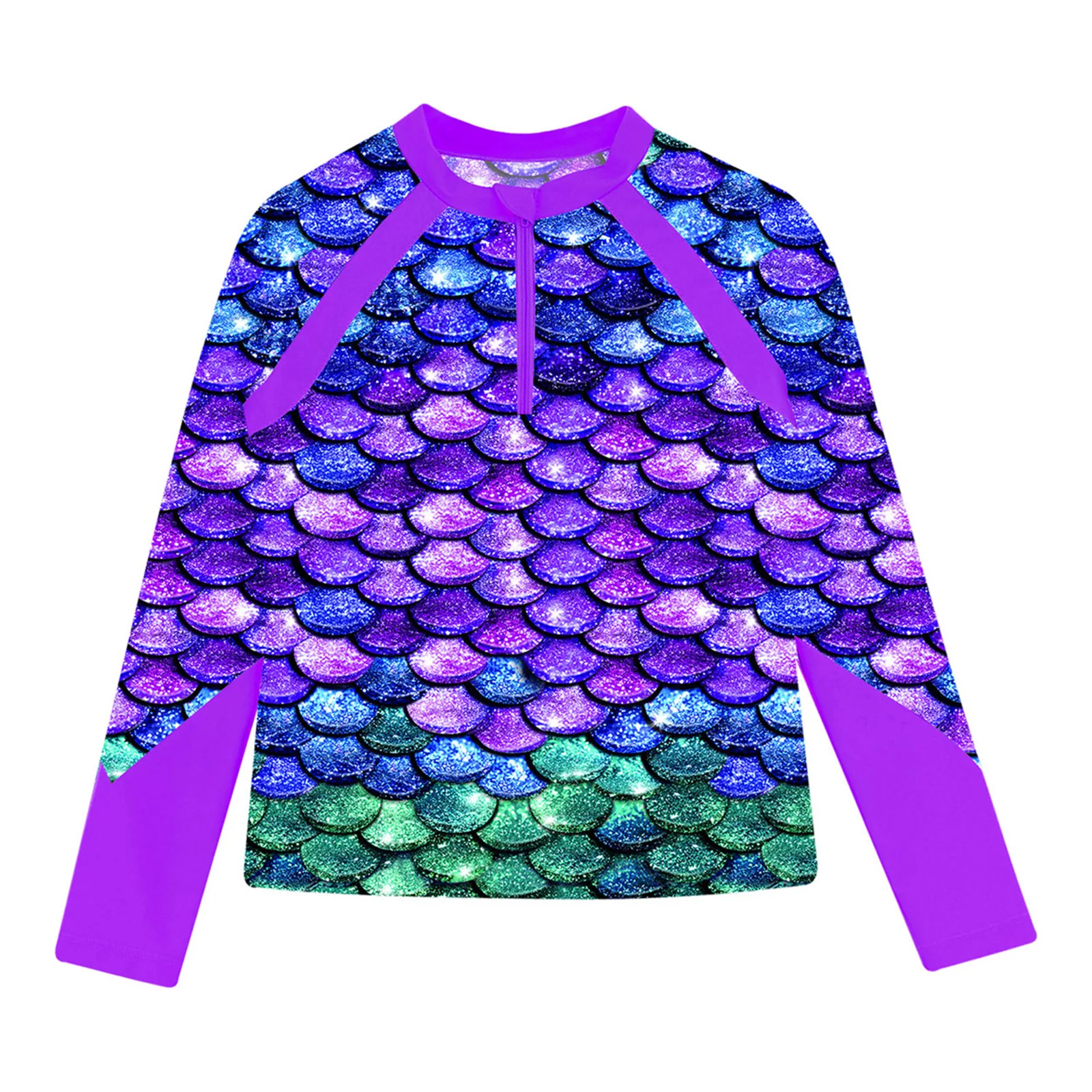 A long sleeve swim top for girls, vibrant print makes girls looks more energetic and beautiful at beach.