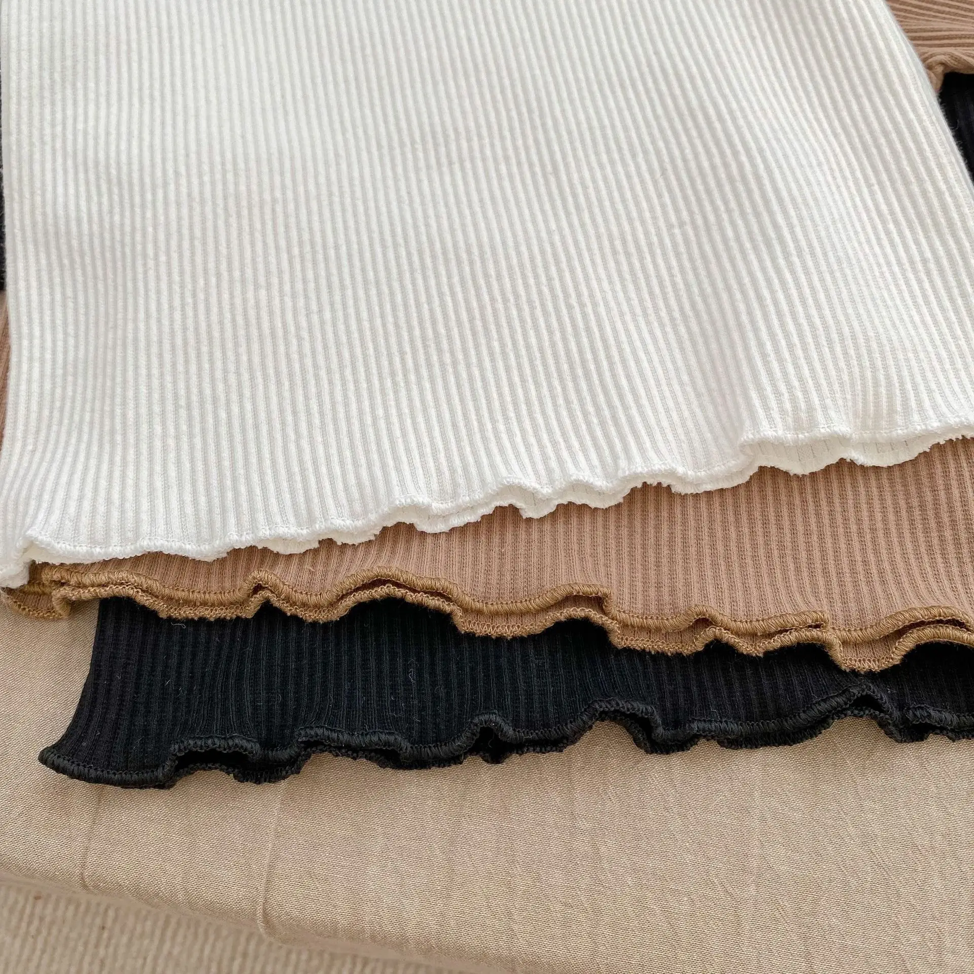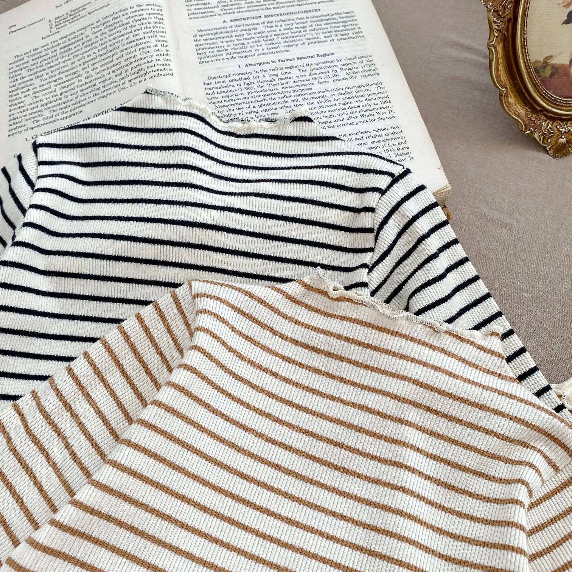 Color: Gold, Kid Size: 9M - New Baby Long Sleeve T Shirt Girls Cotton Casual Tees Infant Ruffled Versatile Shirts Kids Floral Striped Bottoming Tops