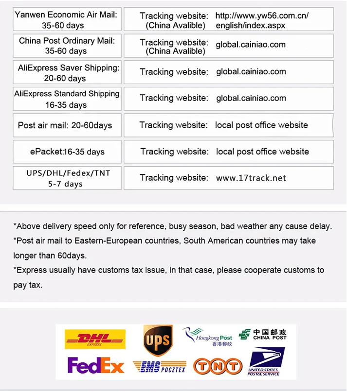 (2) About 3 to 10working days:DHL / UPS /FEDEX