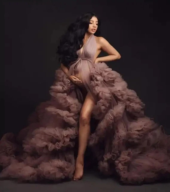 Color: Gold, Maternity Size: XL, Ships From: CHINA - Tulle Long Maternity Dress Photoshoot п?»?°?‚ь?µ photography dresses baby shower dresses for pregnant woman п?»?°?‚ь?µ д?»я ?±?µр