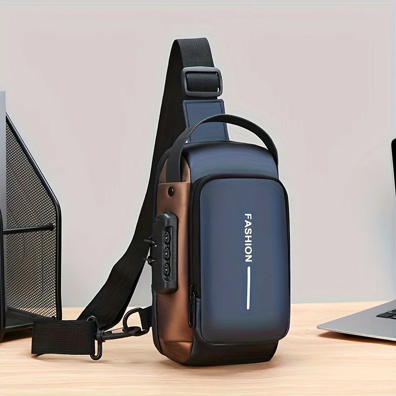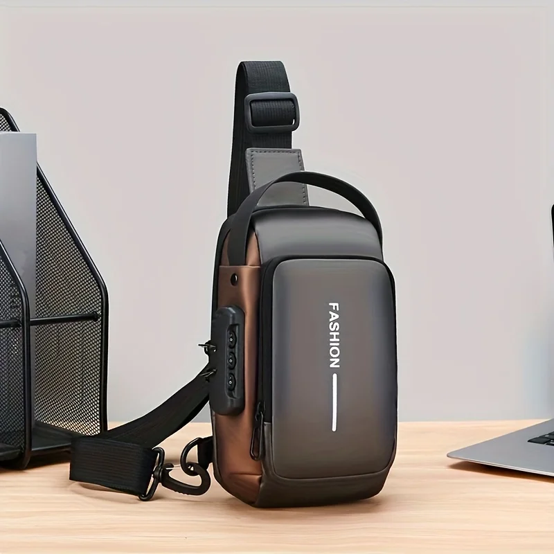 Color: Gold - Men's Sporty High Quality Chest Bag, Motorcycle Phone Pack with Zipper Closure, Secure Travel Bag for Daily Commute