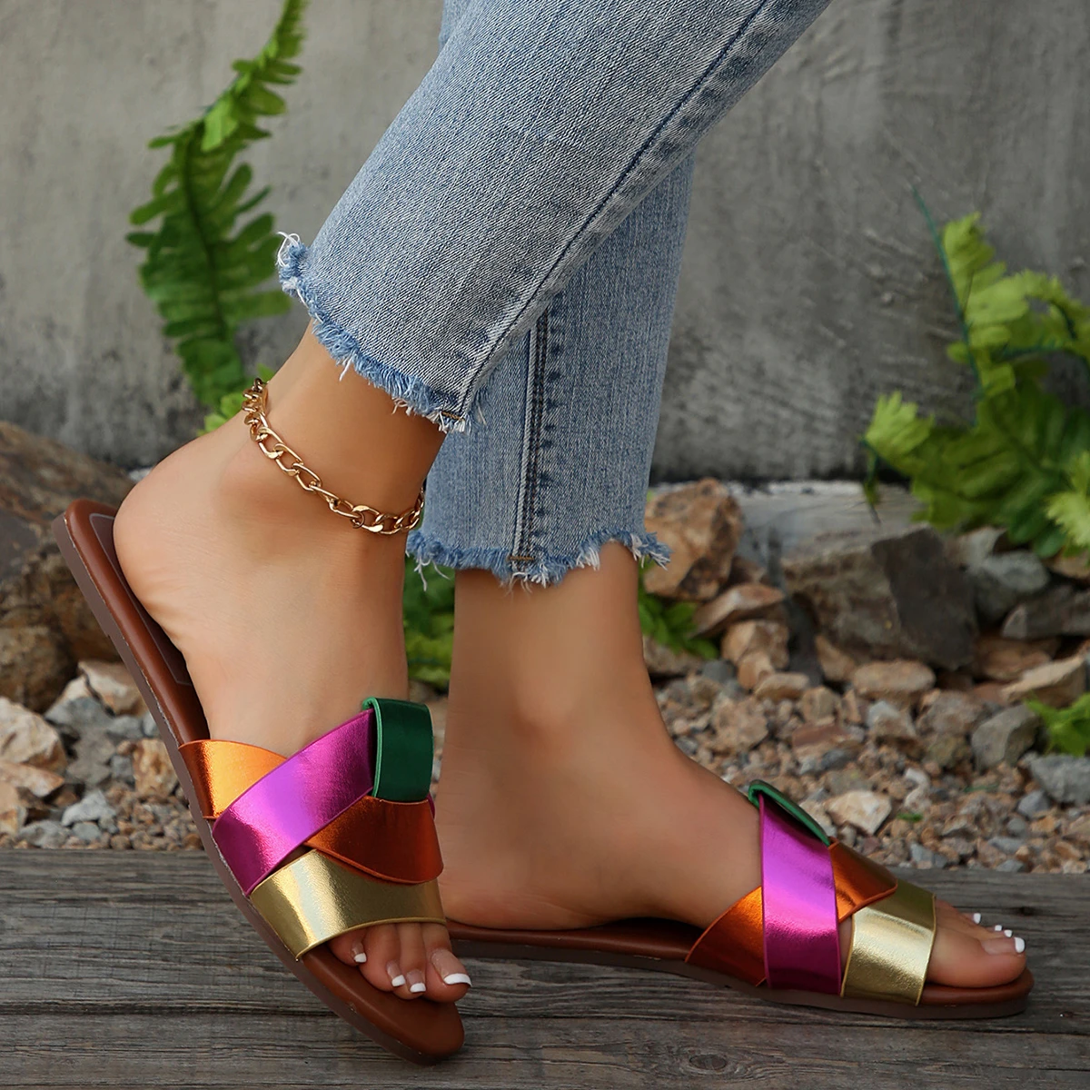 Color: Gold, Shoe Size: 43 - New Fashion Slippers Women Sexy Flat Sandals Casual Ladies Sand Beach Slippers Elegant Fish Mouth Slippers Women