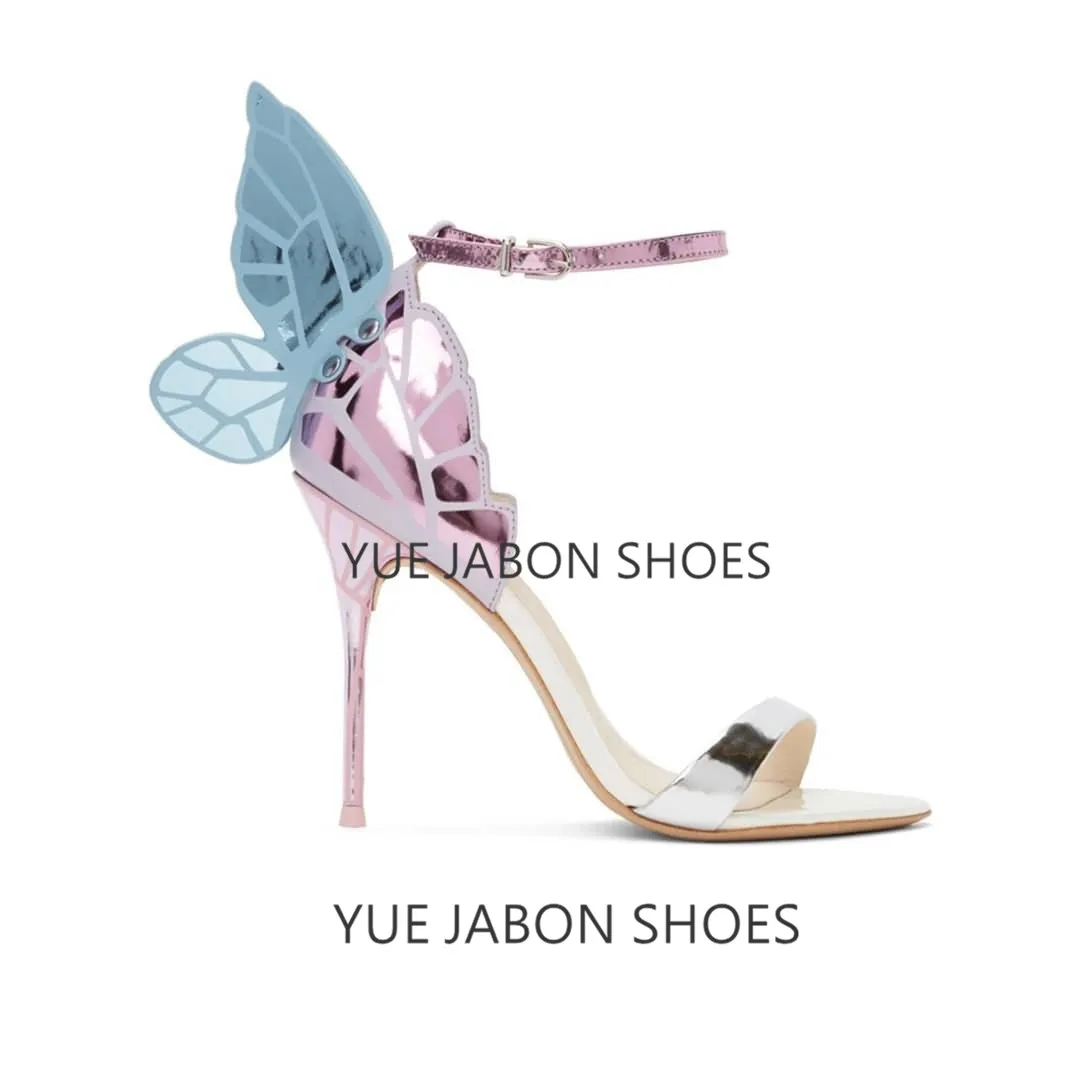 Color: Gold, Shoe Size: 5 - Women Summer Sandals Fashion Embroidered Satin Butterfly High Heeled Footwear Adjustable Ankle Strap Shoes Women high heels