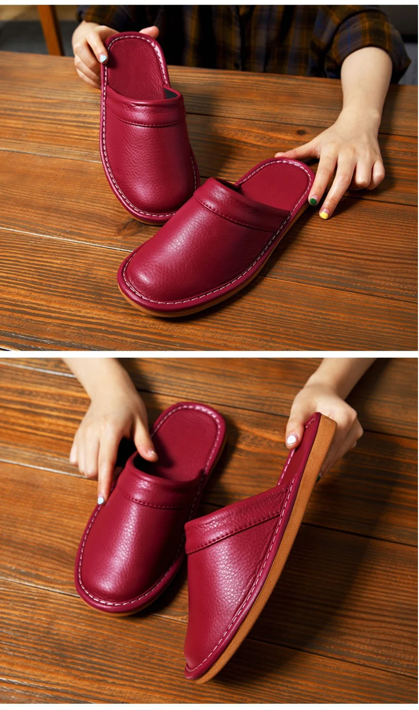 Color: Gold, Shoe Size: 6.5 - Mens Bedroom Leather Slippers Unisex Black Home Shoes Big Size 47 48 Man's Slippers Indoor Comfy Males Slides Family Flats Shoes
