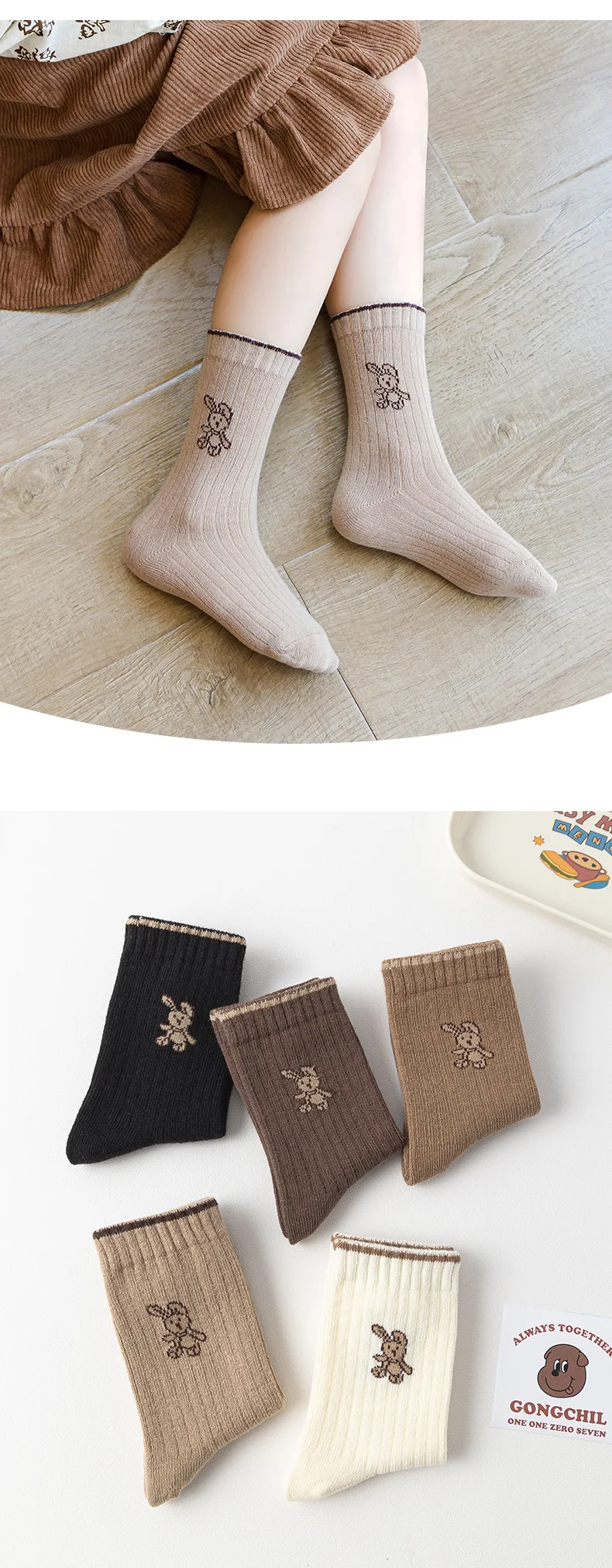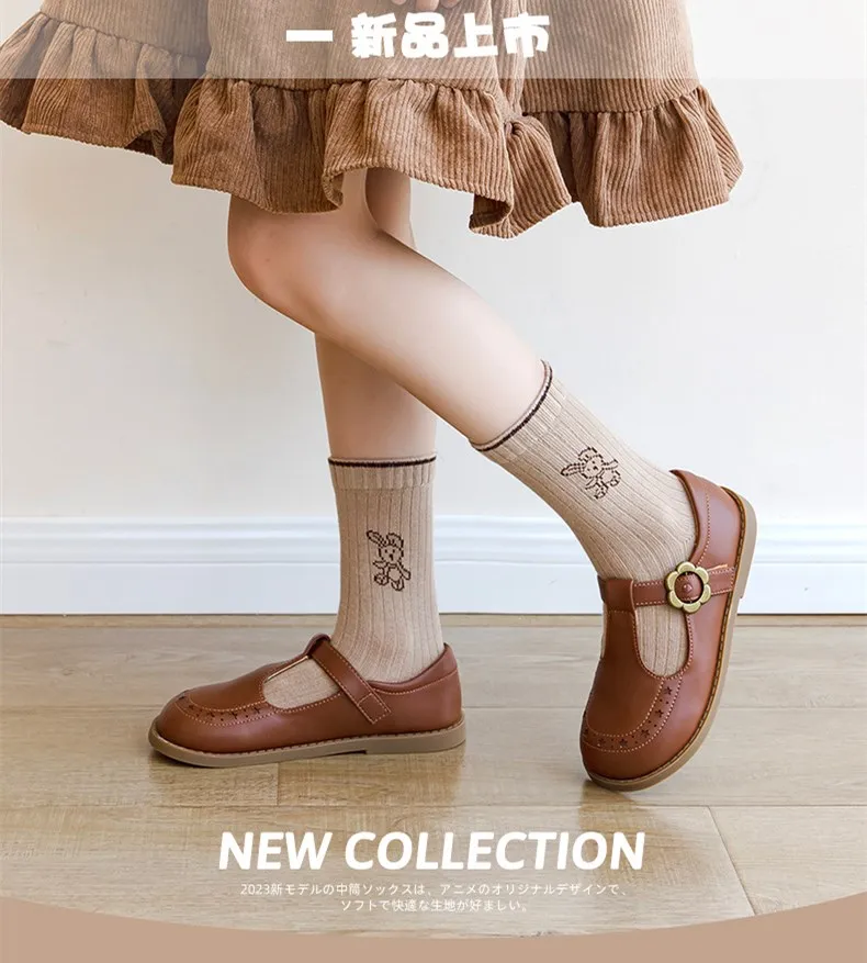 Color: Gold, Size: 10-12T - Autumn Socks Baby 5 Pairs Cartoon Bunny Pattern Socks Girls Calf Length Children Socks Solid Cotton Socks