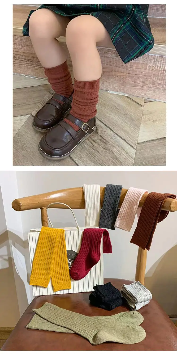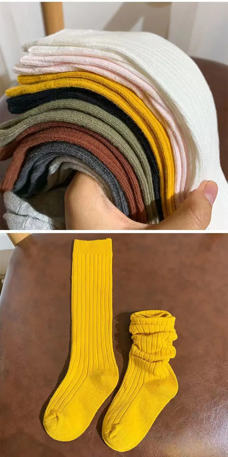 Color: Gold, Size: 2-3T - Baby Long Socks Over The Knee Little Girls Solid Cotton Socks Spring Autumn Long Crew Socks