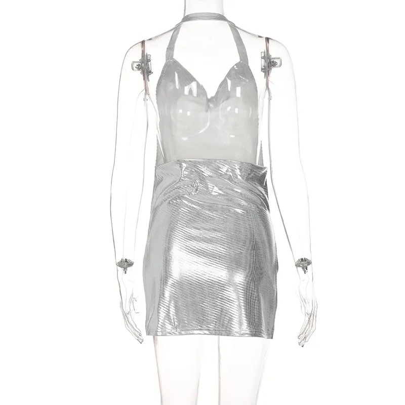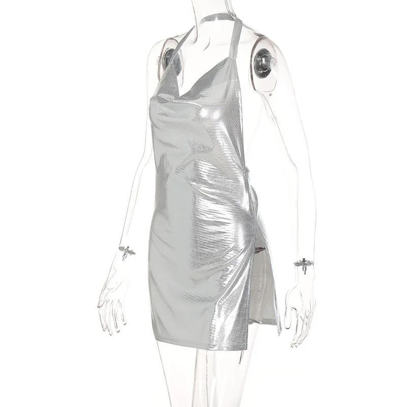 Color: Gold, Size: L - Sexy and Fashionable Women's Elegant Short Dress with Hanging Neck Backless Bottom Chest Sequin Party Girl Dance Dress