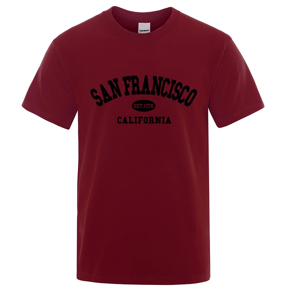 Color: Gold, Size: XL - Sanfrancisco Est.1776 California Letter T-Shirts Men Fashion Oversized Tops Summer Tshirt Loose Designer Luxury Tee Clothing